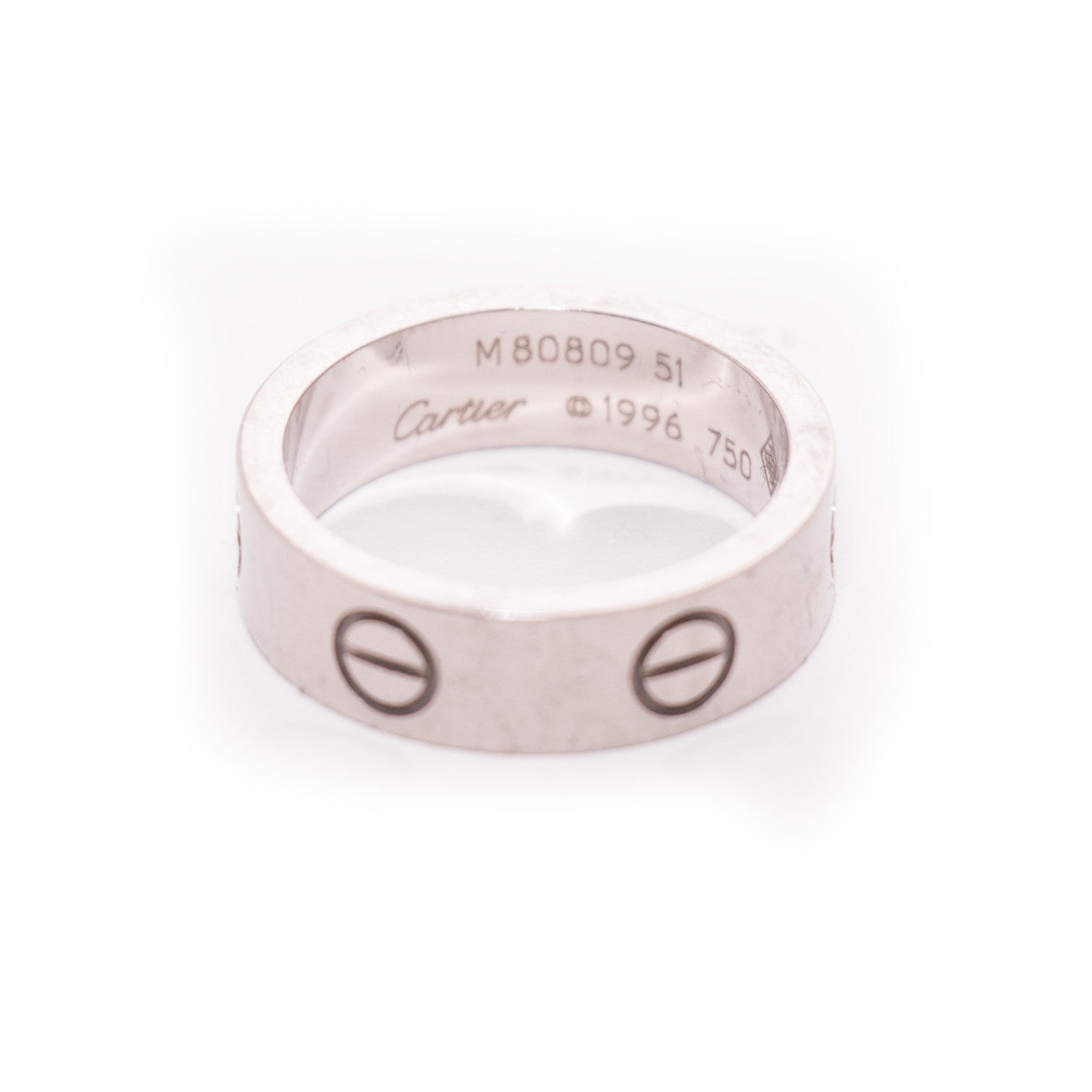Details: White Gold / 18K / Love Band Ring / Engraved With Series Of Screws-Head Motif Throughout / Signed And Numbered