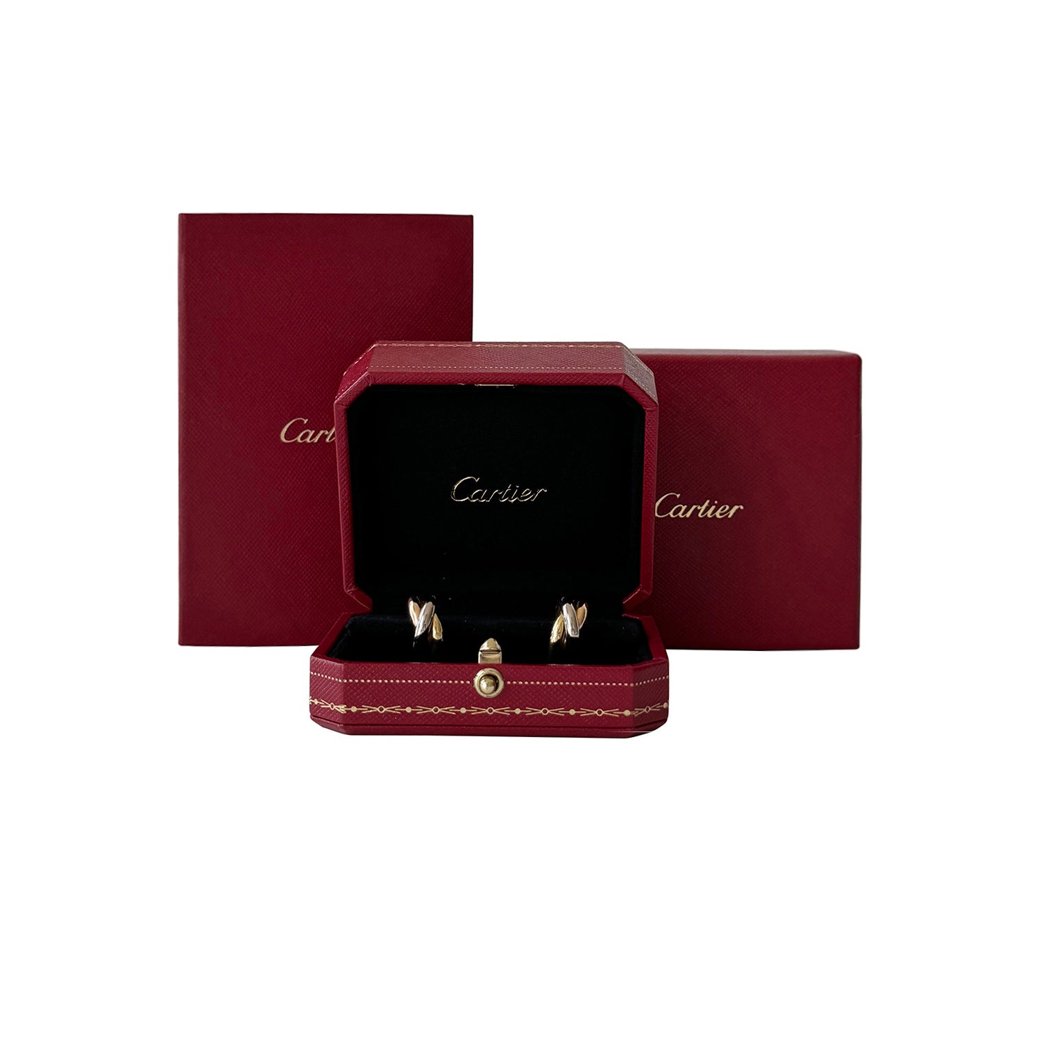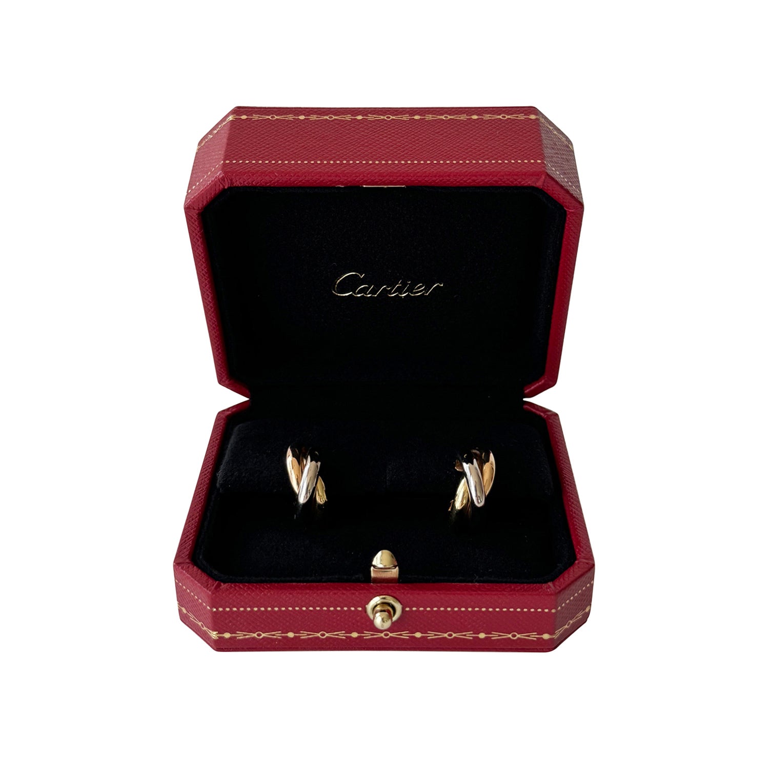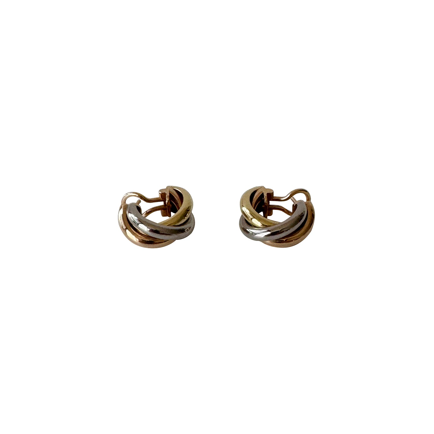 Description: Authentic Pre-Owned Cartier White Yellow Rose Gold Trinity Earrings