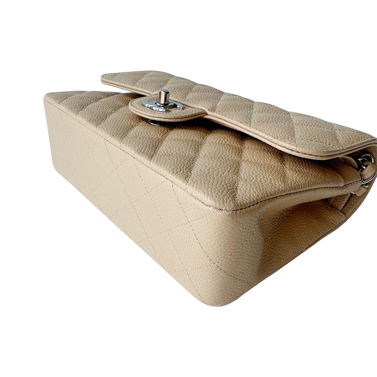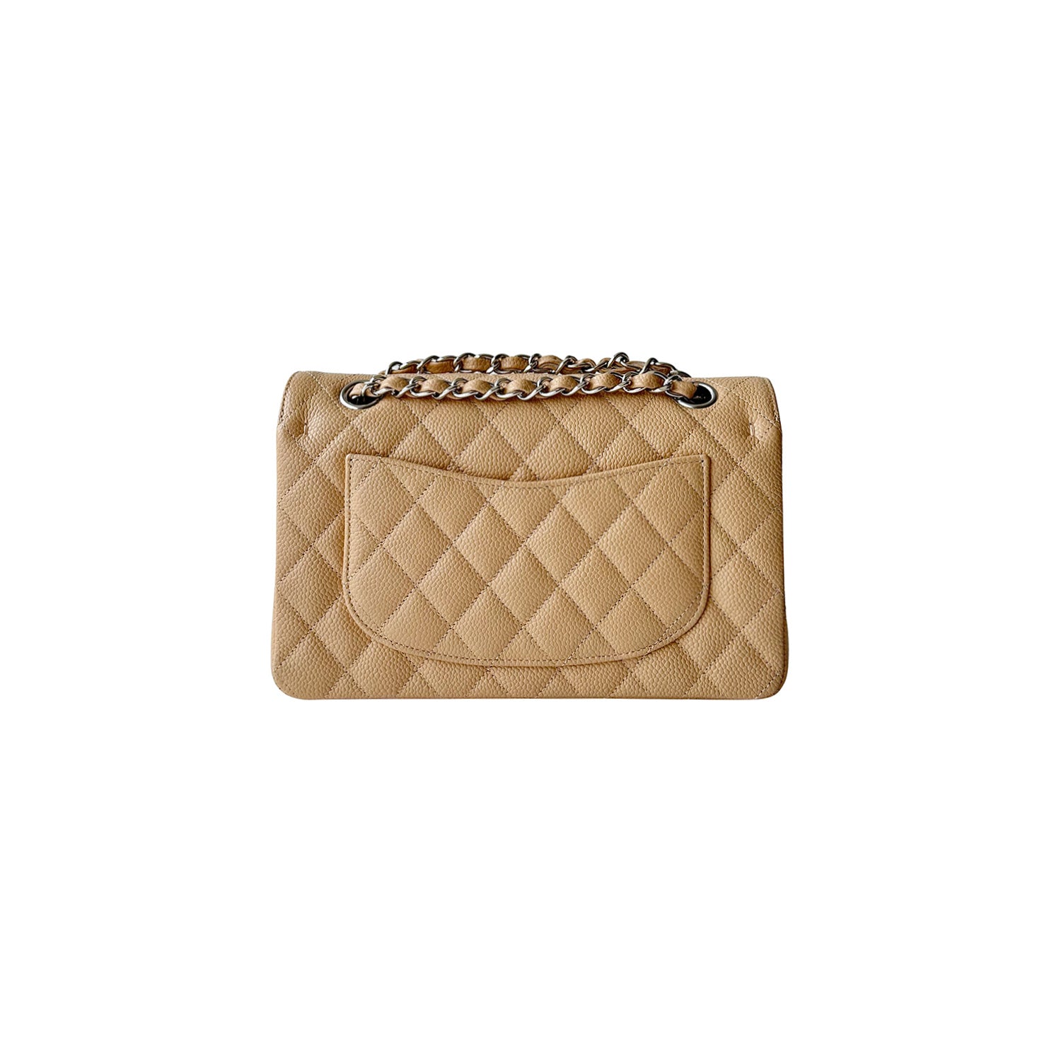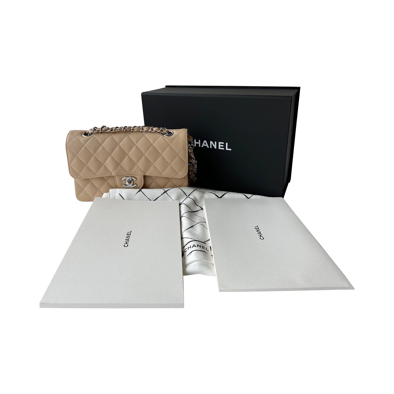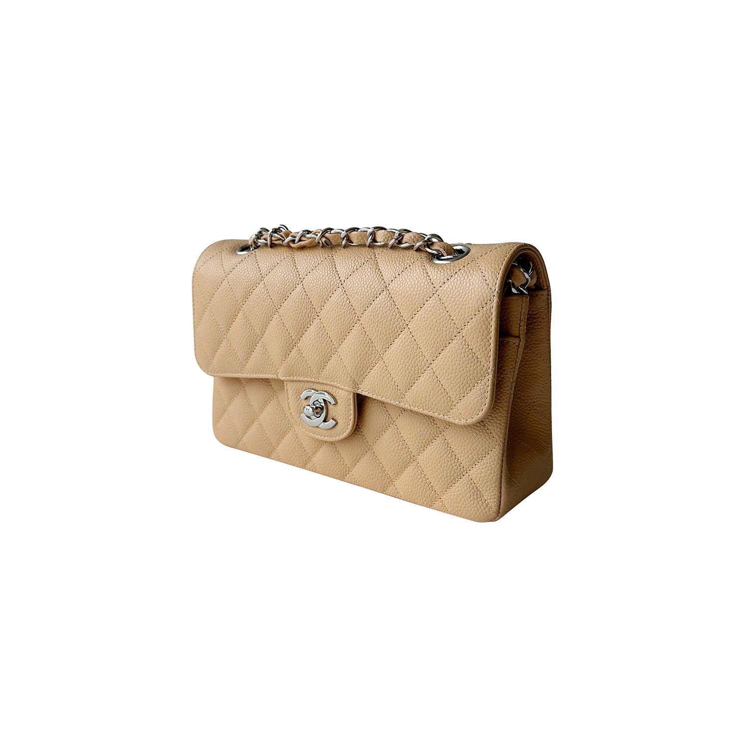 Description: Authentic New Chanel Classic Small Double Flap in Neutral Grained Calfskin Leather