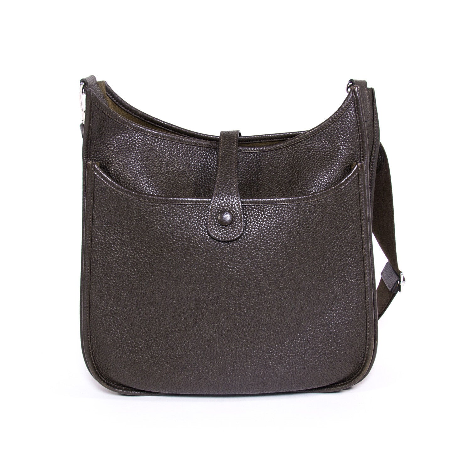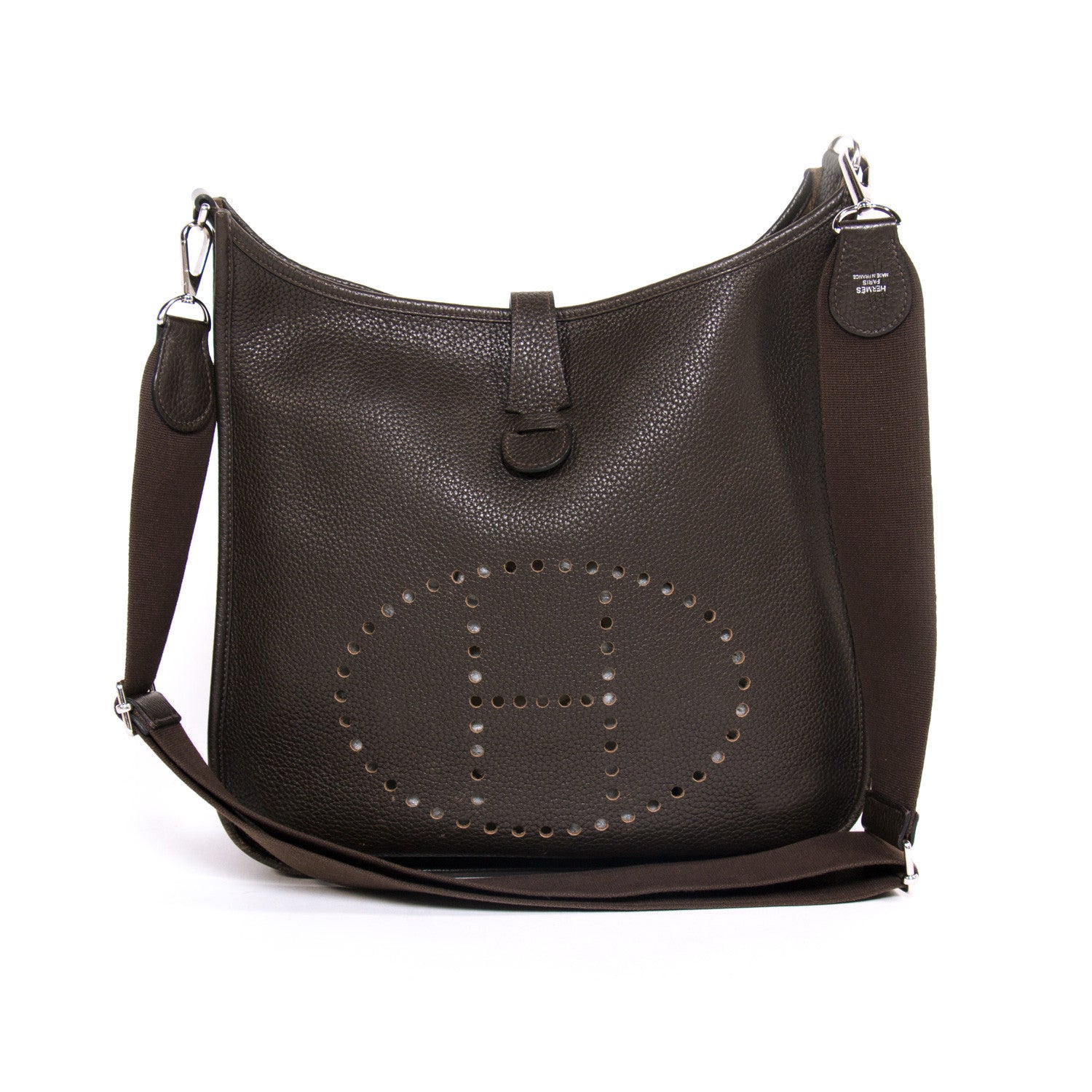 Details: Taurillon Clemence Leather / Silver Trim Palladium Hardware Finish / Cafe Color / Perforated "H" Logo at Front / Cafe Suede Interior Lining /Snap Closure Pressure / Adjustable Shoulder Strap / External Rear Flat Pocket
