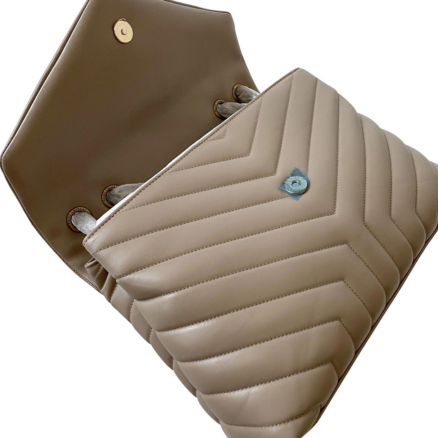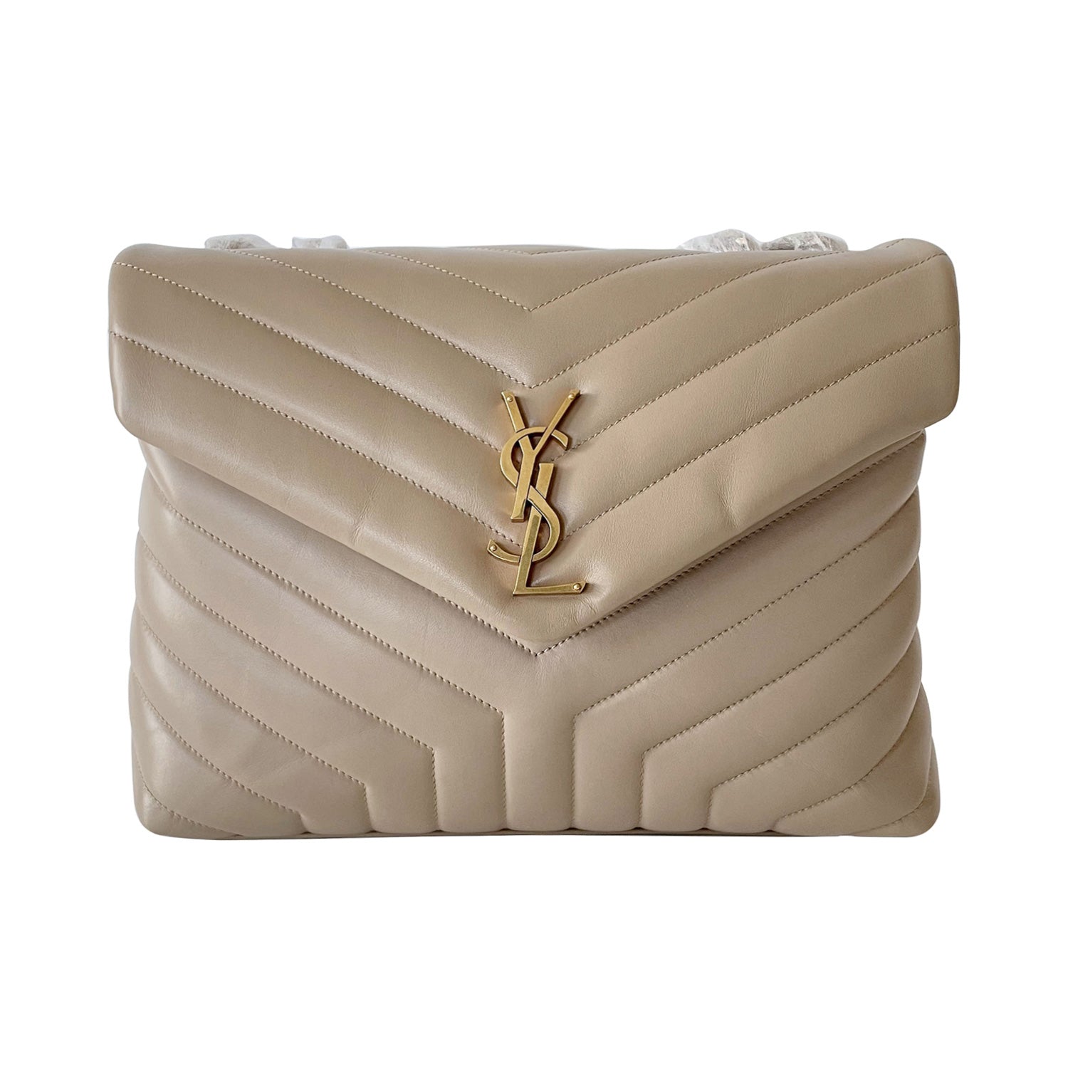 Description: Authentic New Beige Saint Laurent Medium Matelassé LouLou Leather Shoulder Bag