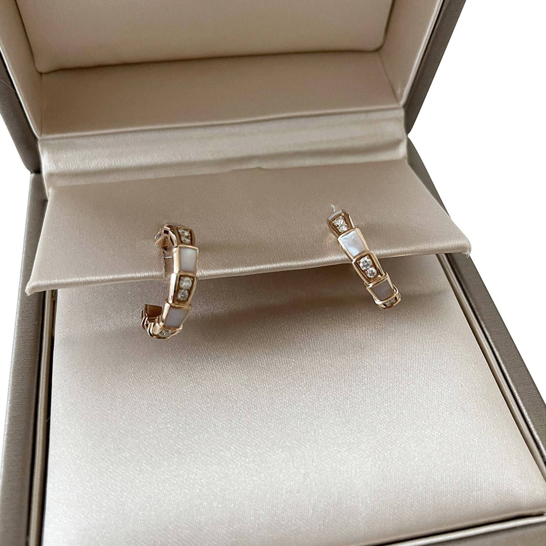 Bvlgari Mother of Pearl & Diamond Serpenti Viper Hoop Earrings
