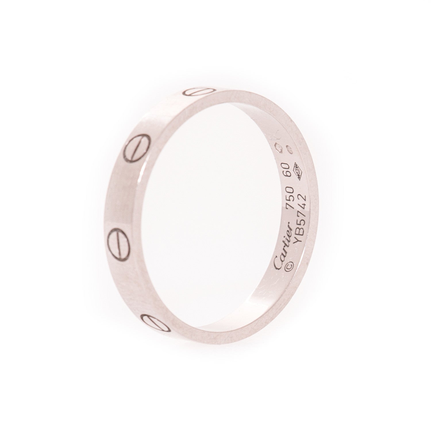 Details: 18K White Gold / Love Wedding Band / Engraved With Series Of Screws-Head Motif Throughout / Signed And Numbered Cartier YB5742 / Swiss Convention Mark / Both Men And Women
