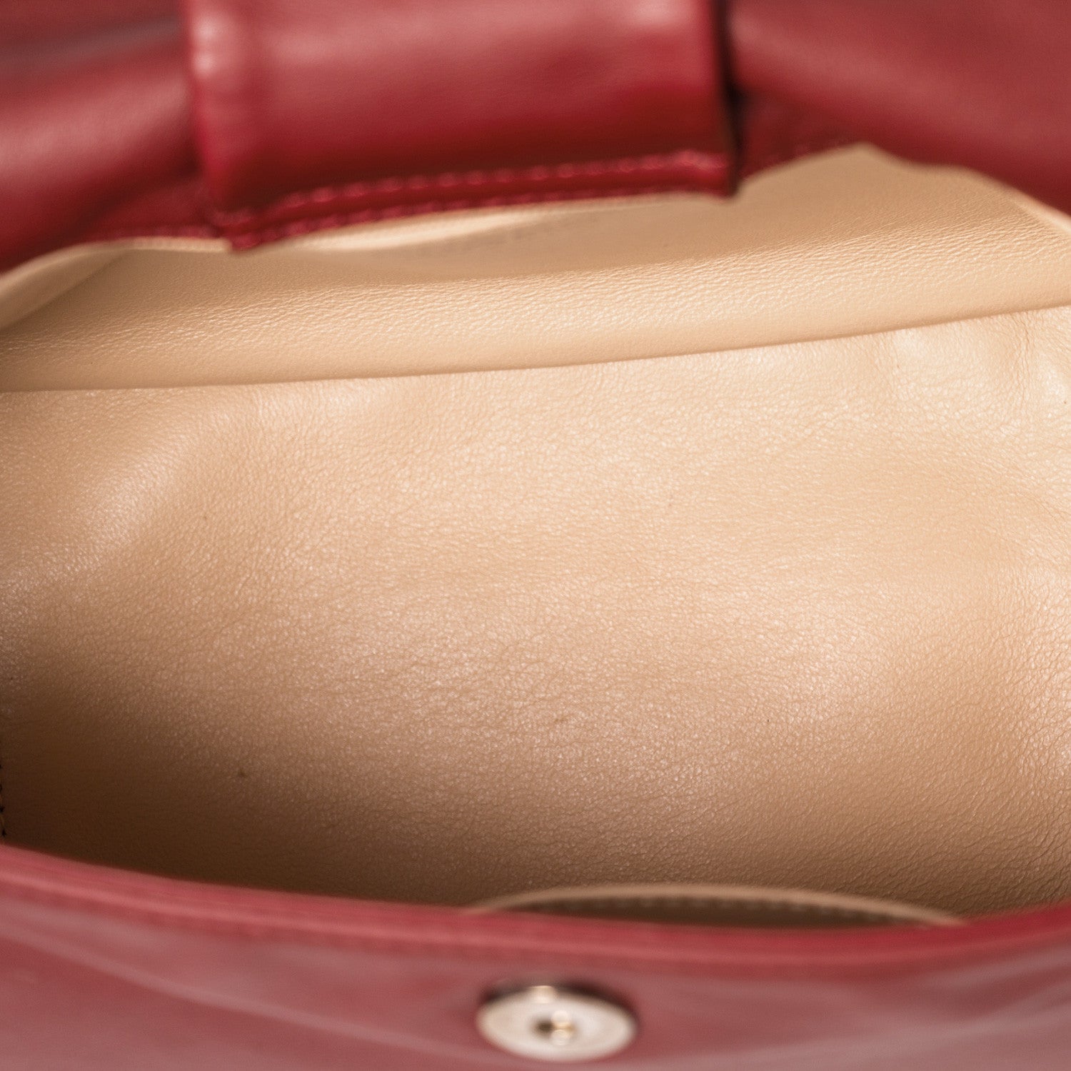 Details: Burgundy Leather / Silver-Tone Hardware / Braided Leather And Chain Shoulder Strap / Tonal Stitching / Logo At Front / Beige Leather Interior Lining / Dual Pockets At Interior Walls, One With Zip Closure / Interior Magnetic Snap Closure / Flap Closure At Front