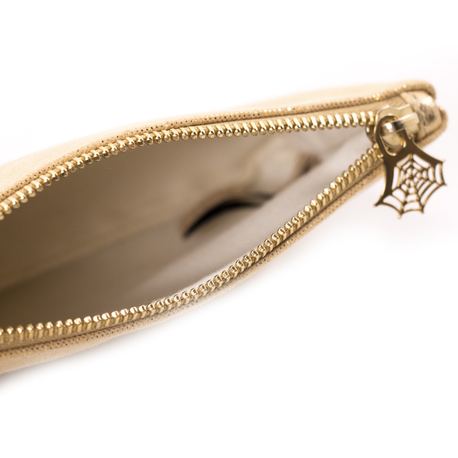 Details: Clear Perspex / Gold-Tone Hardware / Spider Embellishment at Top / Two Interchangeable Zip Pouch in Beige and Leopard Print / Magnetic Closure at Top