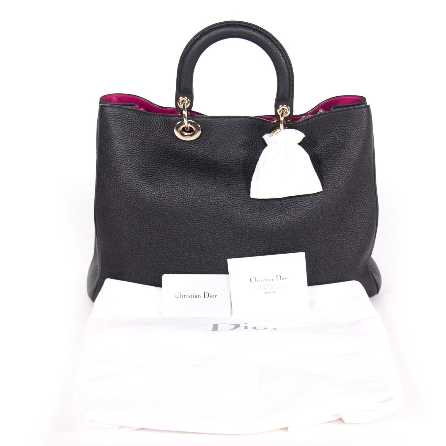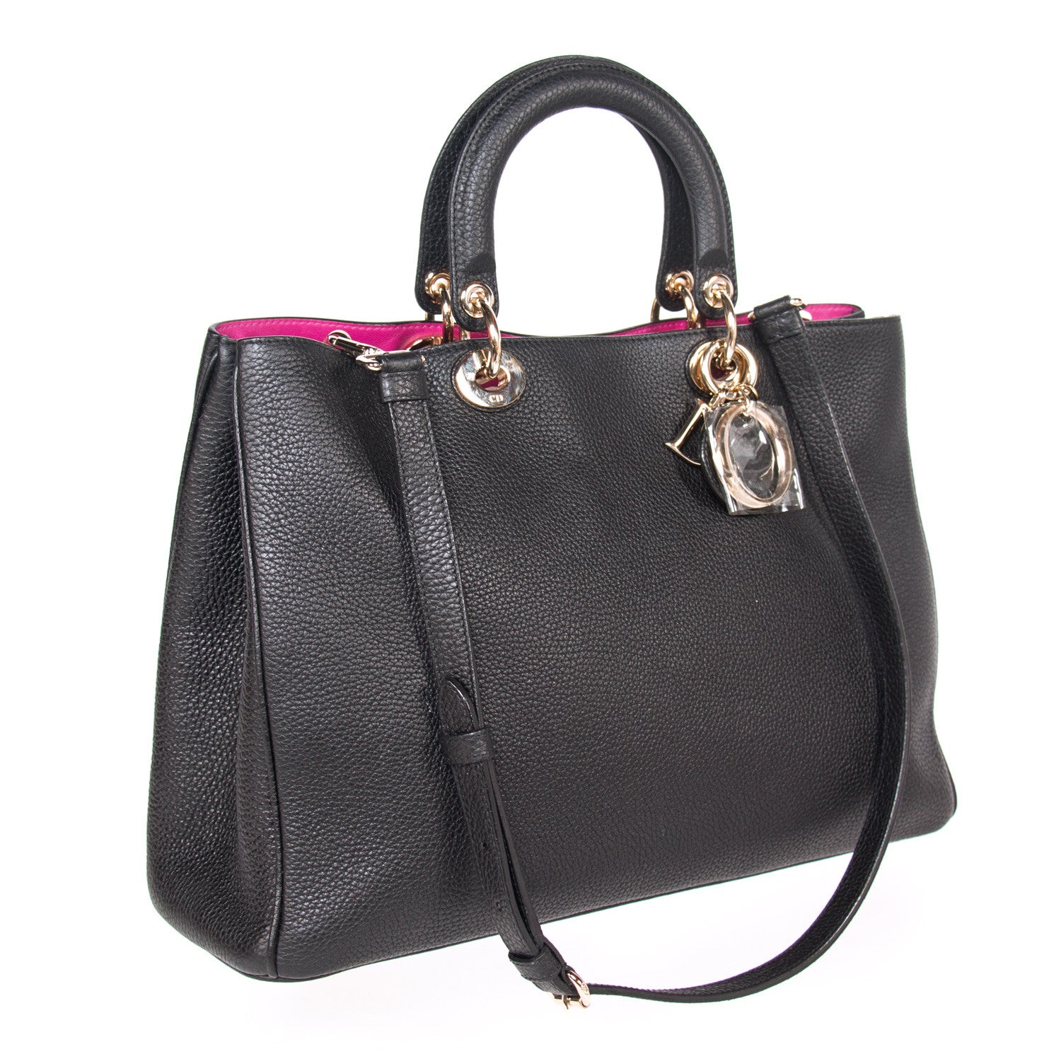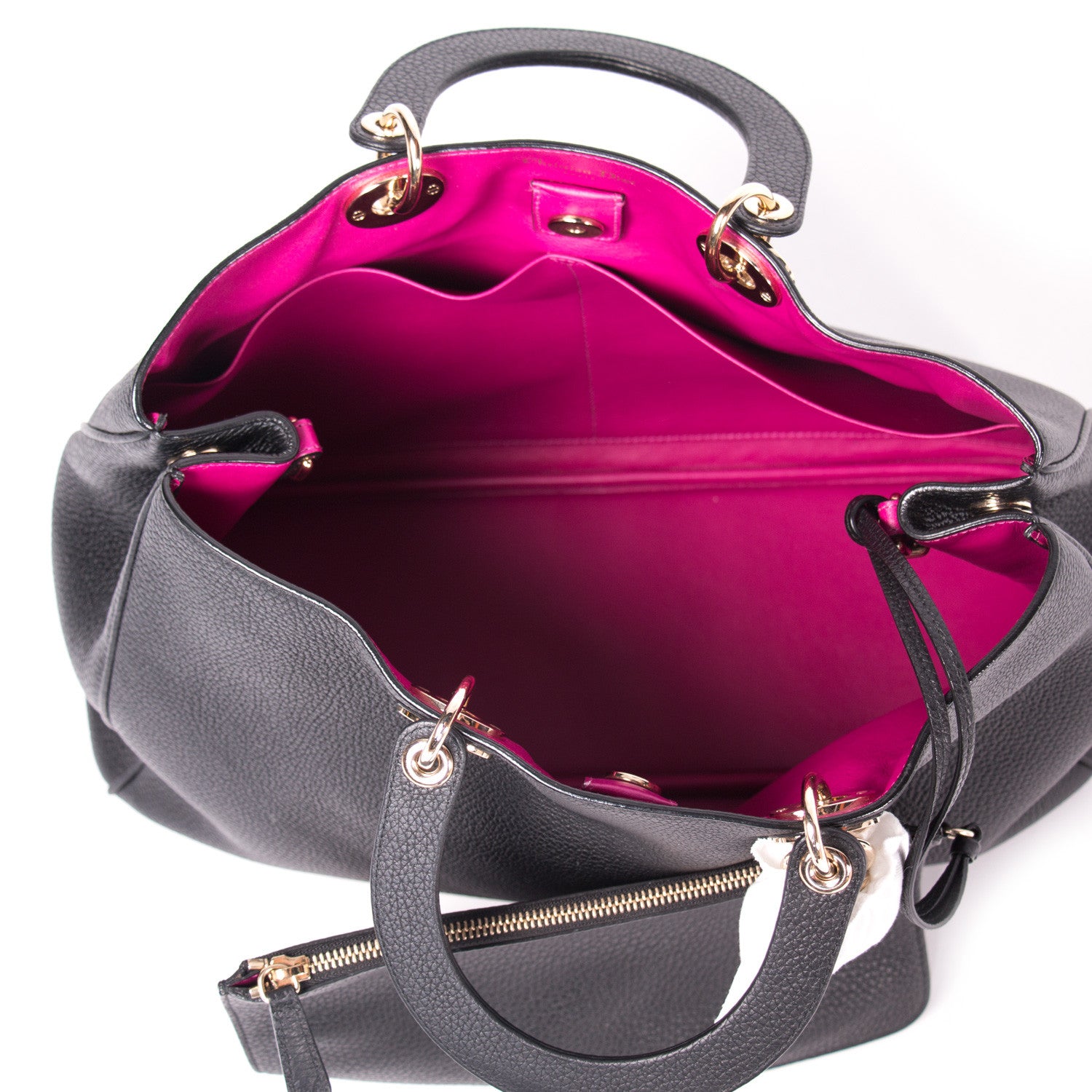 Details: Back Leather / Gold-Tone Hardware / Adjustable Detachable Shoulder Strap / Dual Rolled Handles / Tonal Stitching Throughout / Pink Interior Leather Lining / Dual Pocket At Interior Walls / Additional Zip Pochette At Interior / Magnetic Snap Closure At Top / Protective Studs At Base / Logo Charm On Front