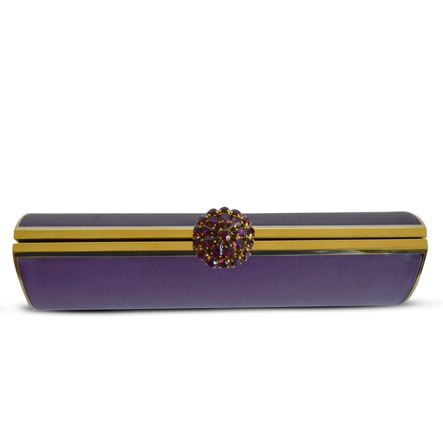 Details: Purple Smooth Leather / Gold-Tone Hardware / Crystal Flower Snap Closer With Push Button / "Elie Saab" Gold Tone Engraved Plate On The Interior
