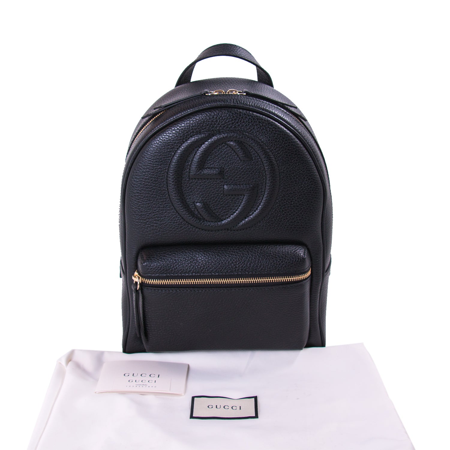 Description: Authentic New Gucci Black Soho Textured-Leather Backpack