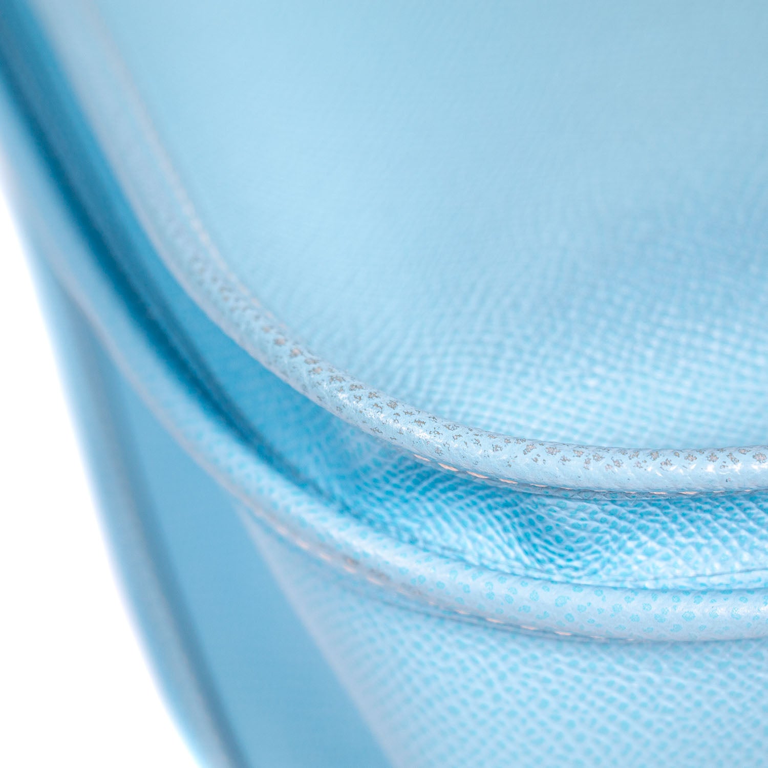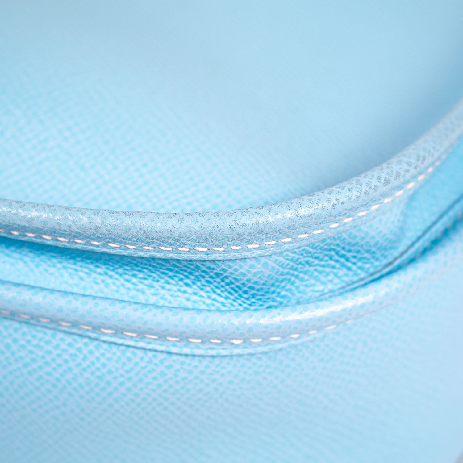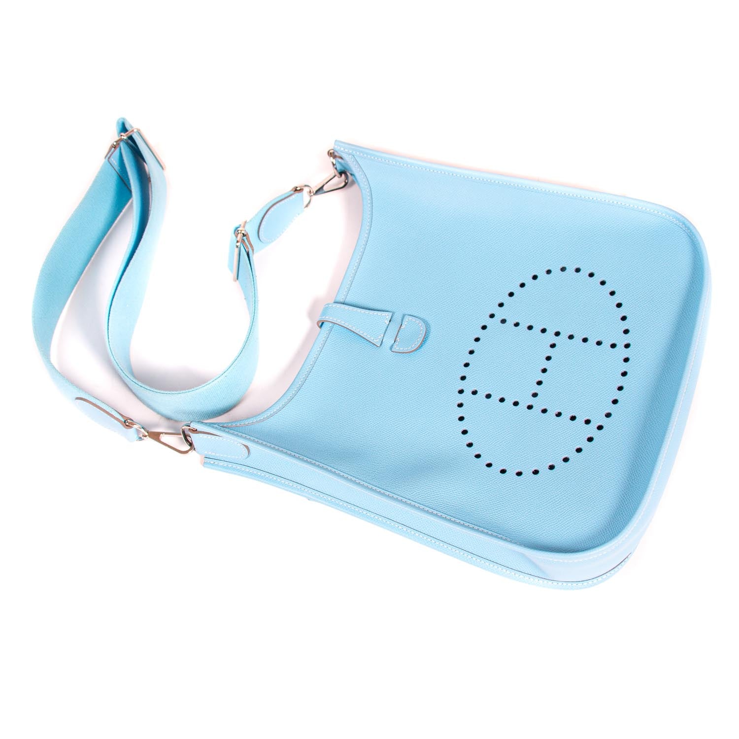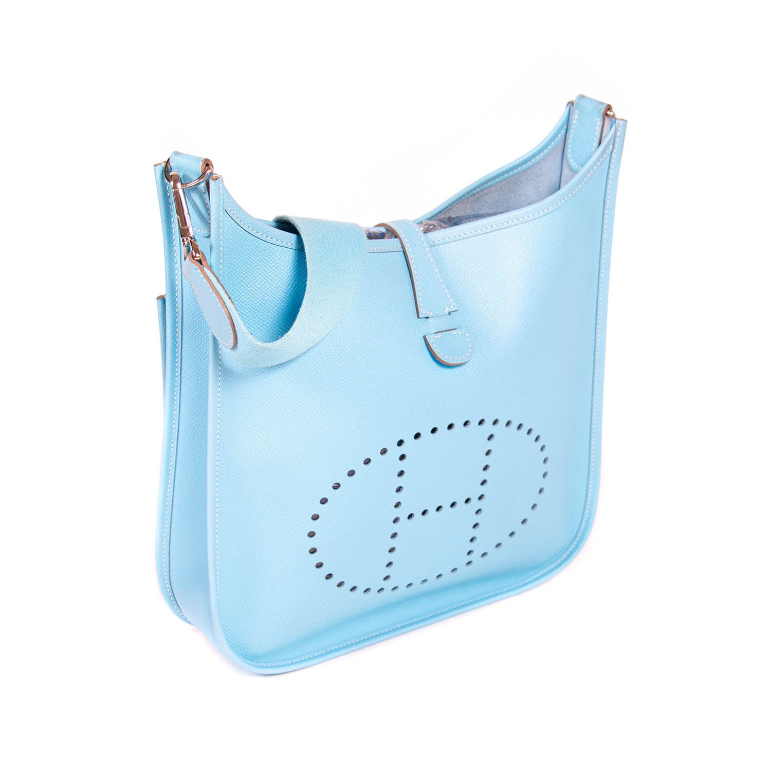 Details: Sky Blue Epsom Leather / Palladium Hardware / Detachable and Adjustable Shoulder Strap / Exterior Pocket at Back / Perforated H Logo at Front / Suede Interior Lining / One Compartment / Push Lock Closure