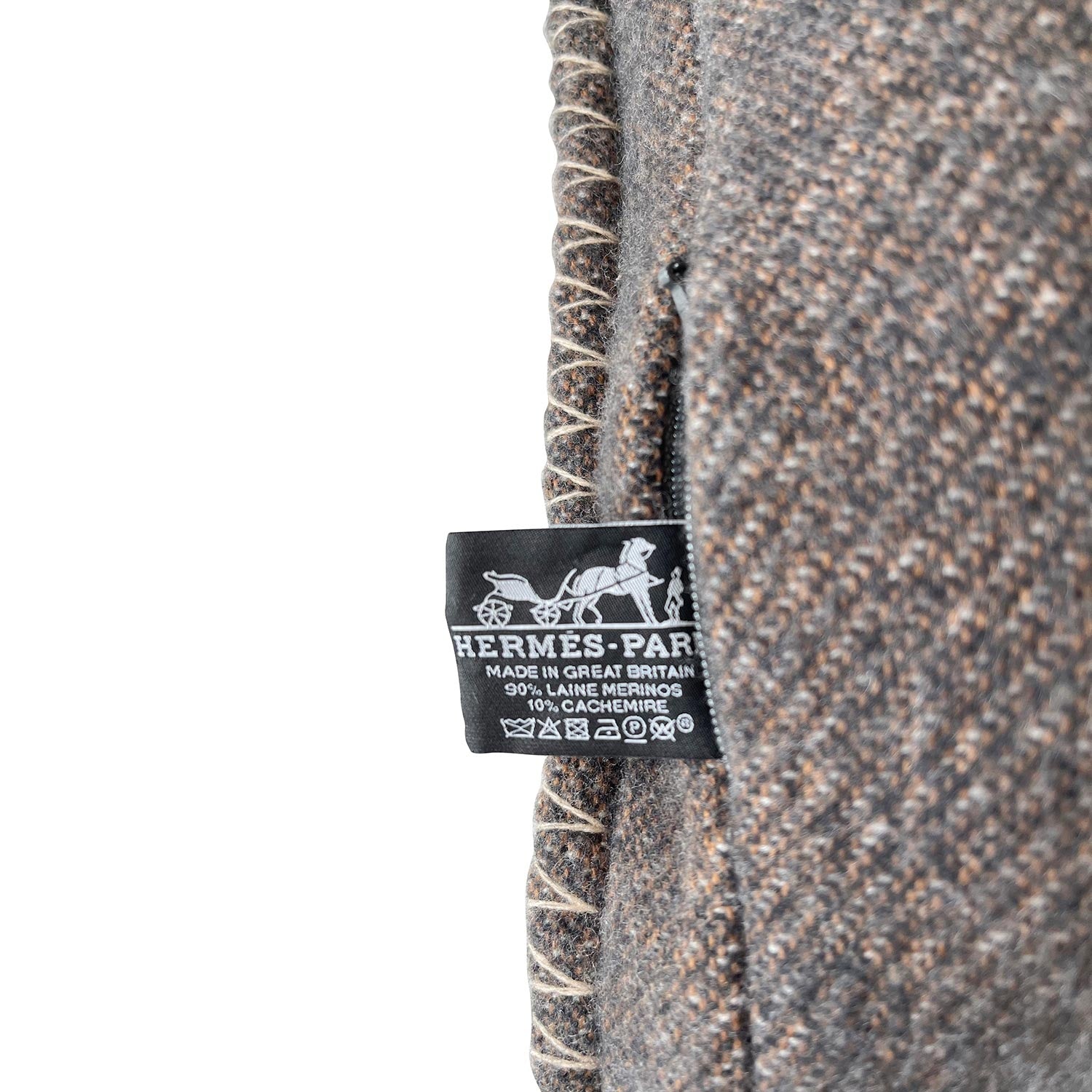 Description: Authentic Pre-Owned Hermès H Casaque Pair Throw Pillow in Ecru and Carbone Merino Wool and Cashmere
