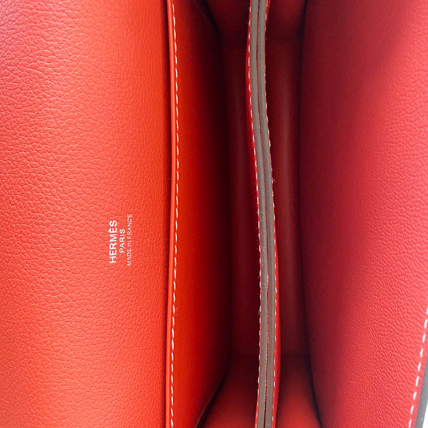 Description: Authentic Pre-Owned Hermès Evercolor Rouge Casaque Sac Roulis 23