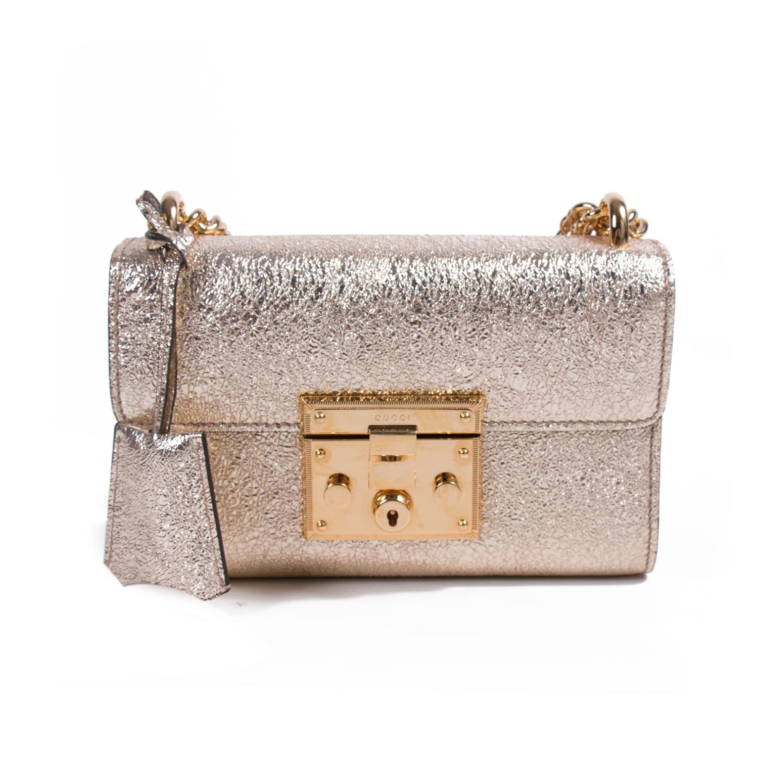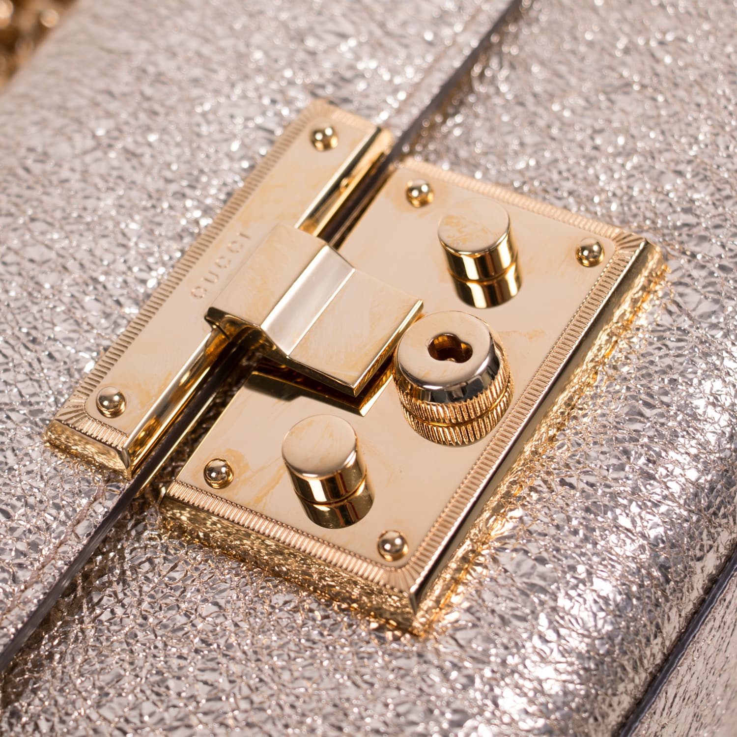 Description: Authentic Pre-Owned Gucci GG Metallic Padlock Shoulder Bag