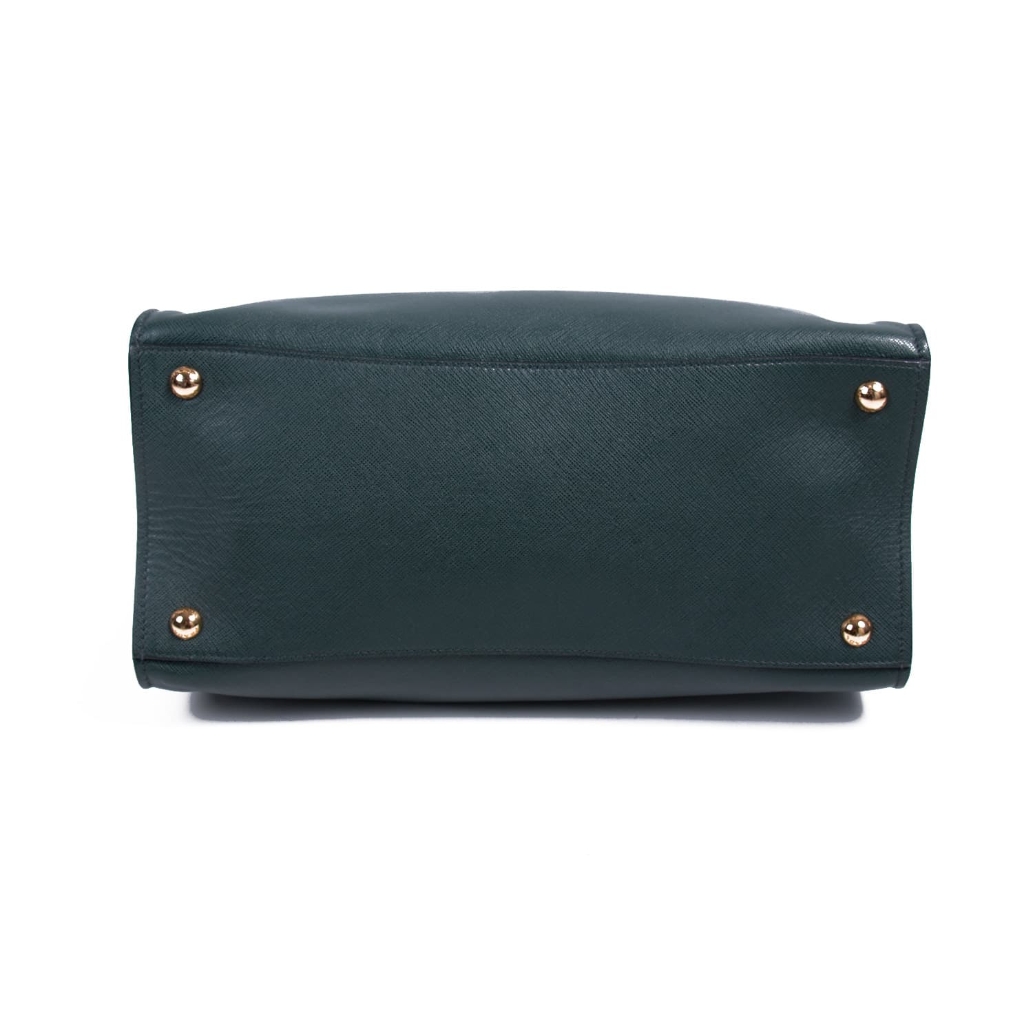 Details: Dark Green Saffiano Leather / Gold-Tone Hardware / Dual Rolled Handles / Detachable Adjustable Shoulder Strap / Protective Studs at Base / Five Compartments, Two with Magnet Closure and One with Zipper / Three Slit Pockets and Two Zip Pockets / Open Top