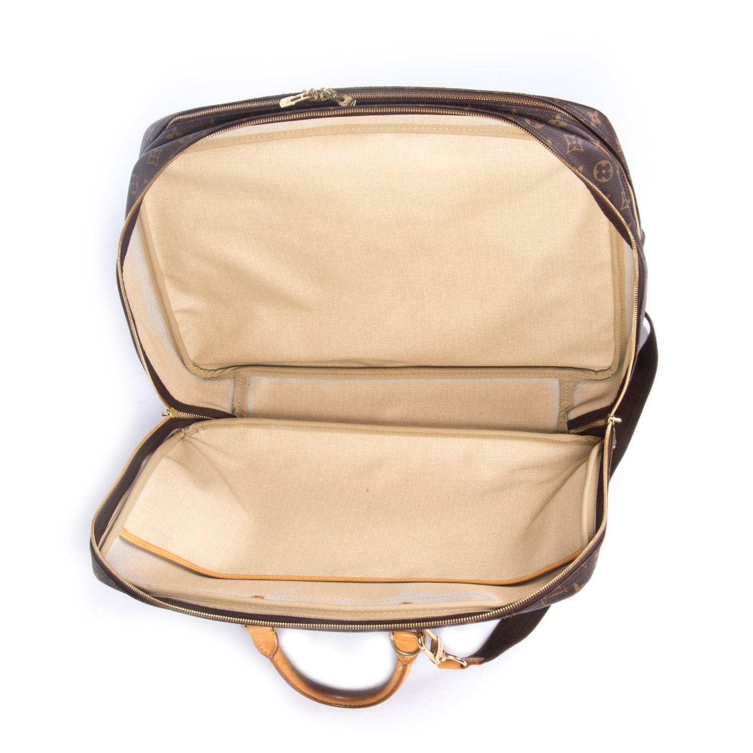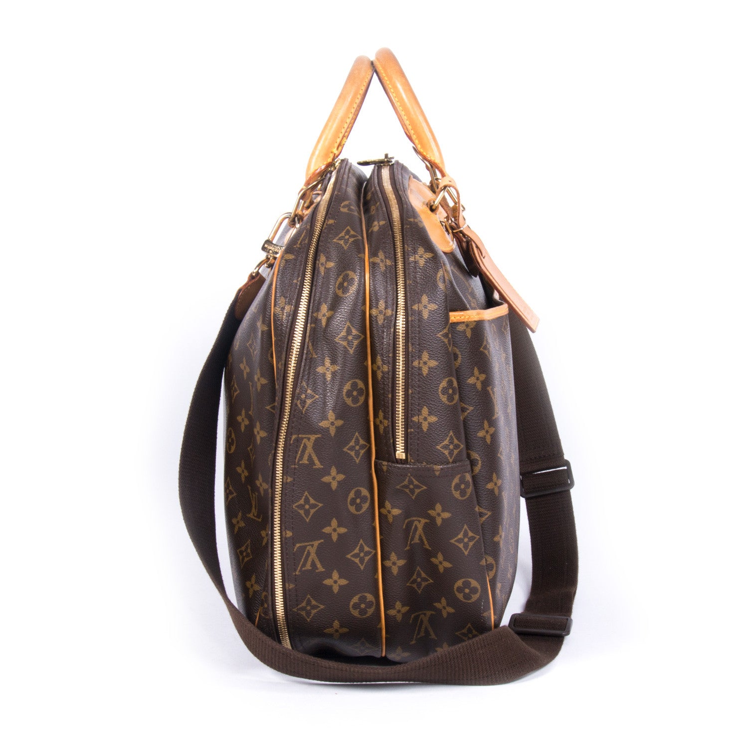 Details: Brown and Tan Monogram Coated Canvas / Brass Hardware, Tan Vachetta Leather Trim / Dual Rolled Top Handles / Single Pocket At Outside Front / Two Compartments With Zip Closures / Beige Canvas Interior lining And Dual Pockets At Interior Walls / Optional Shoulder Strap / Louis Vuitton Name Tag