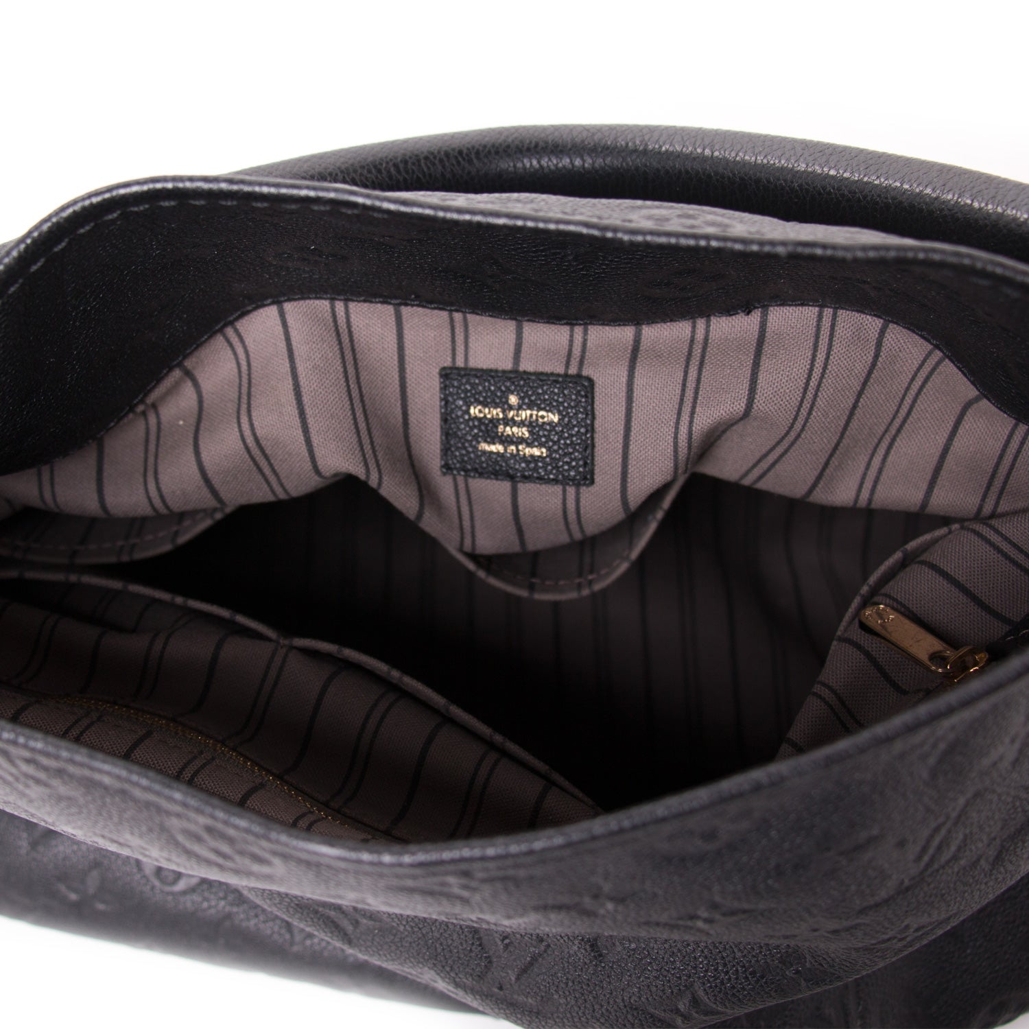 Description: Authentic Pre-Owned Louis Vuitton Black Monogram Empreinte Artsy MM