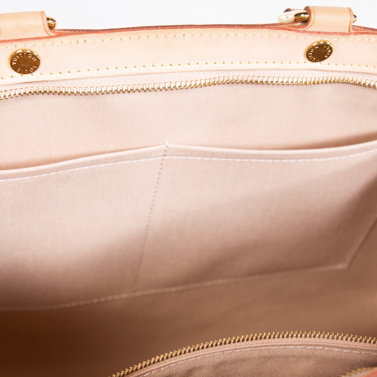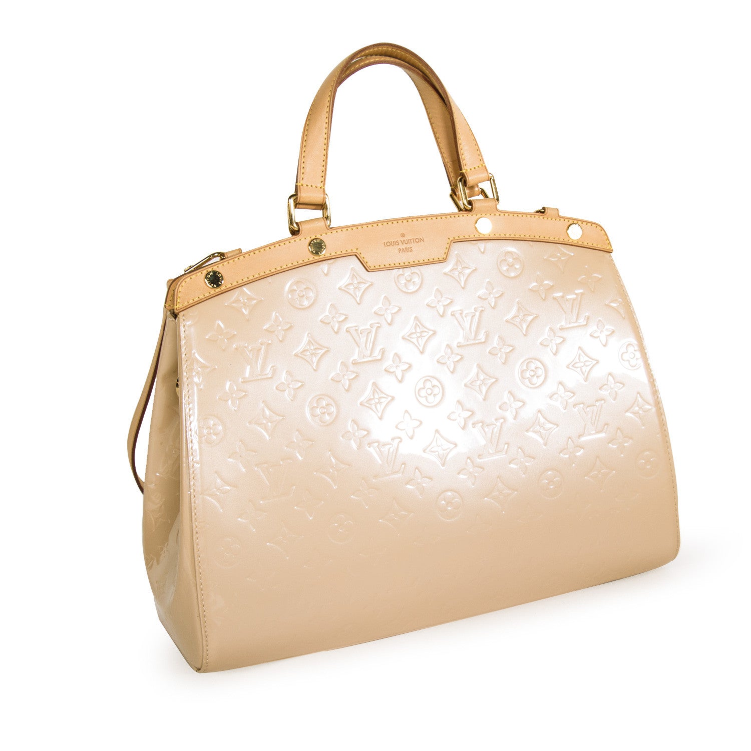 Details: Nude Monogram Vernis Leather / Tan Vachetta Leather Trim / Gold Tone Hardware / Dual Rolled Handles / Detachable Adjustable Shoulder Strap / Tonal Beige Canvas Lining / Single Zip Pocket At Interior / Dual Slit Pocket At Interior Wall / Zip Closure On Top