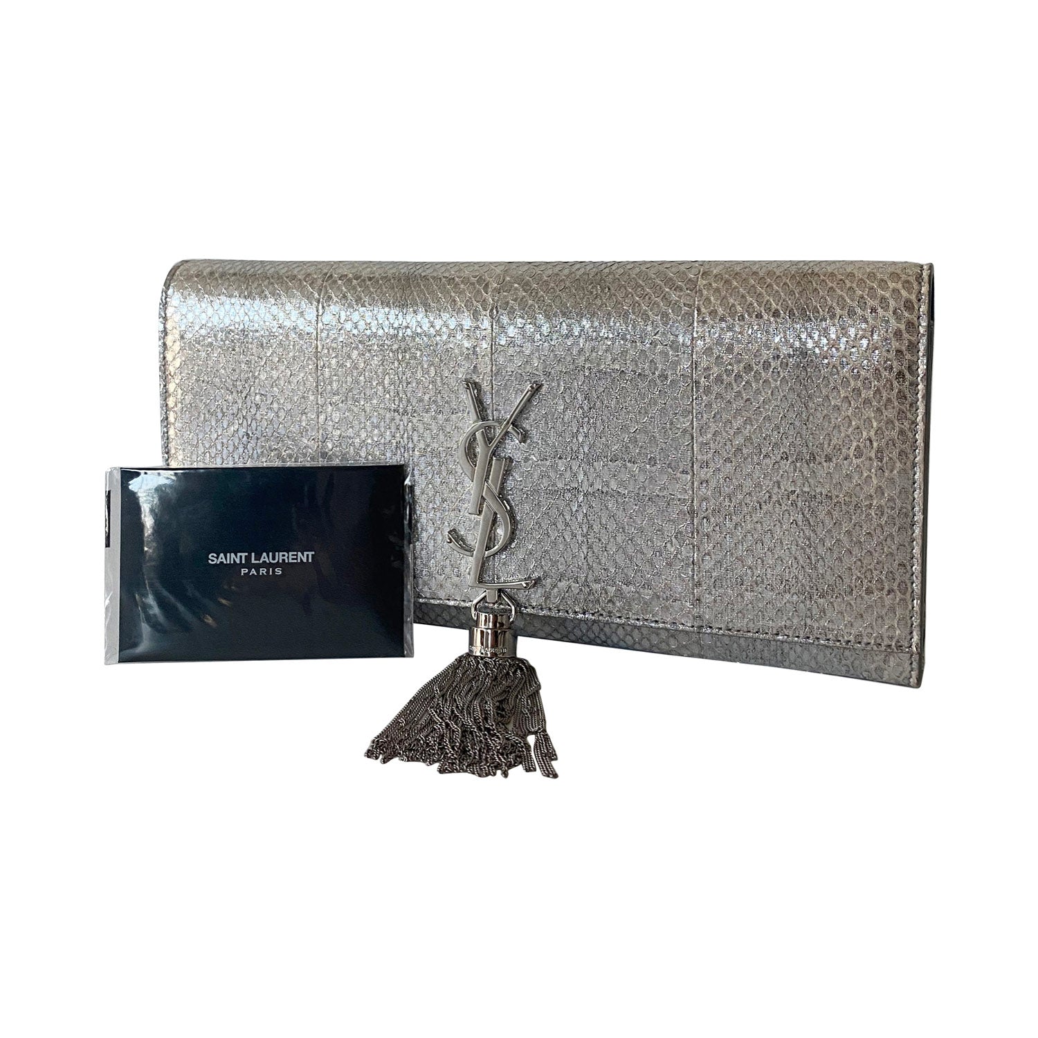 Description: Authentic Pre-Owned Saint Laurent Classic Snake Skin Monogram Kate Clutch