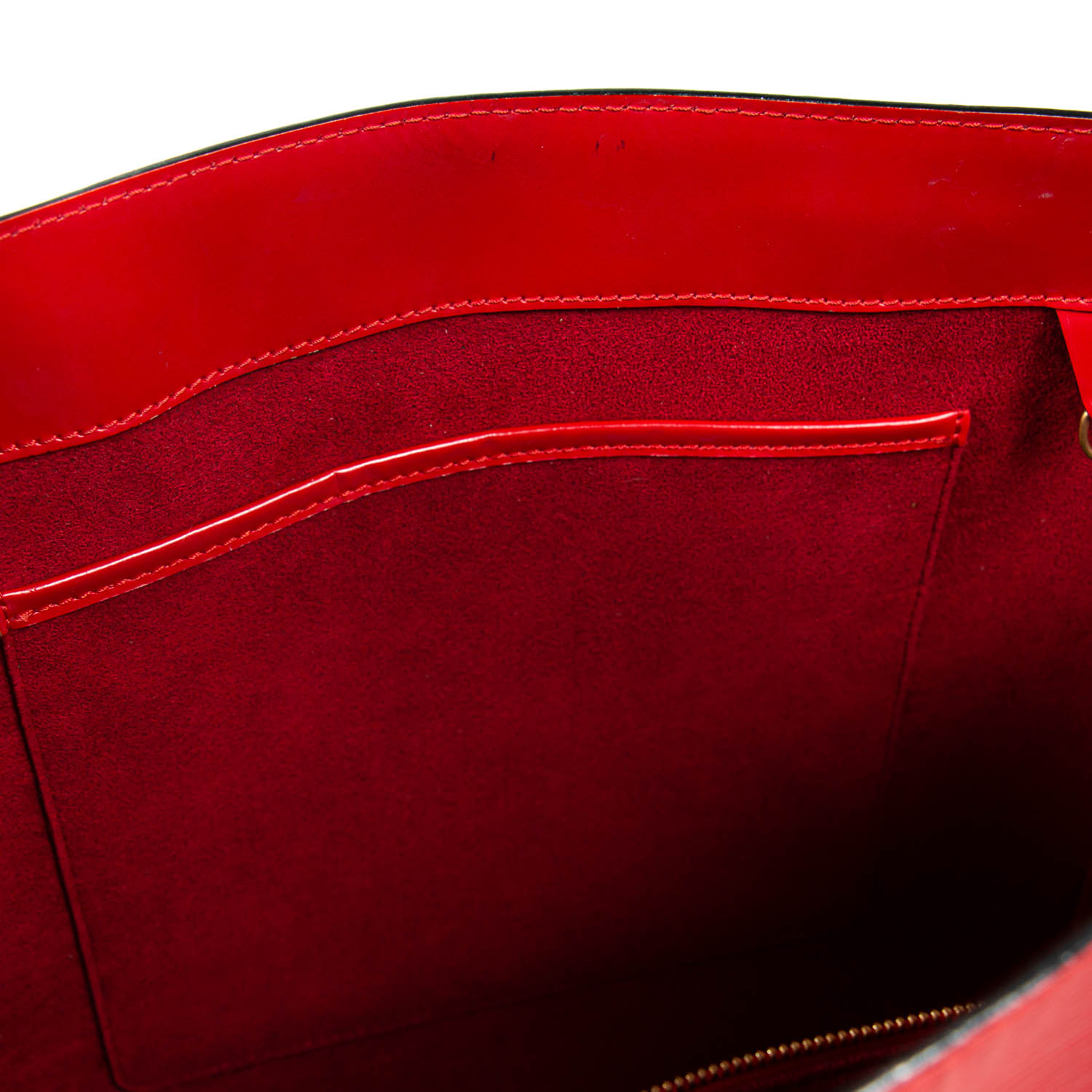 One Compartment. One Flat and One Zip Pocket. Red Alcantara Lining