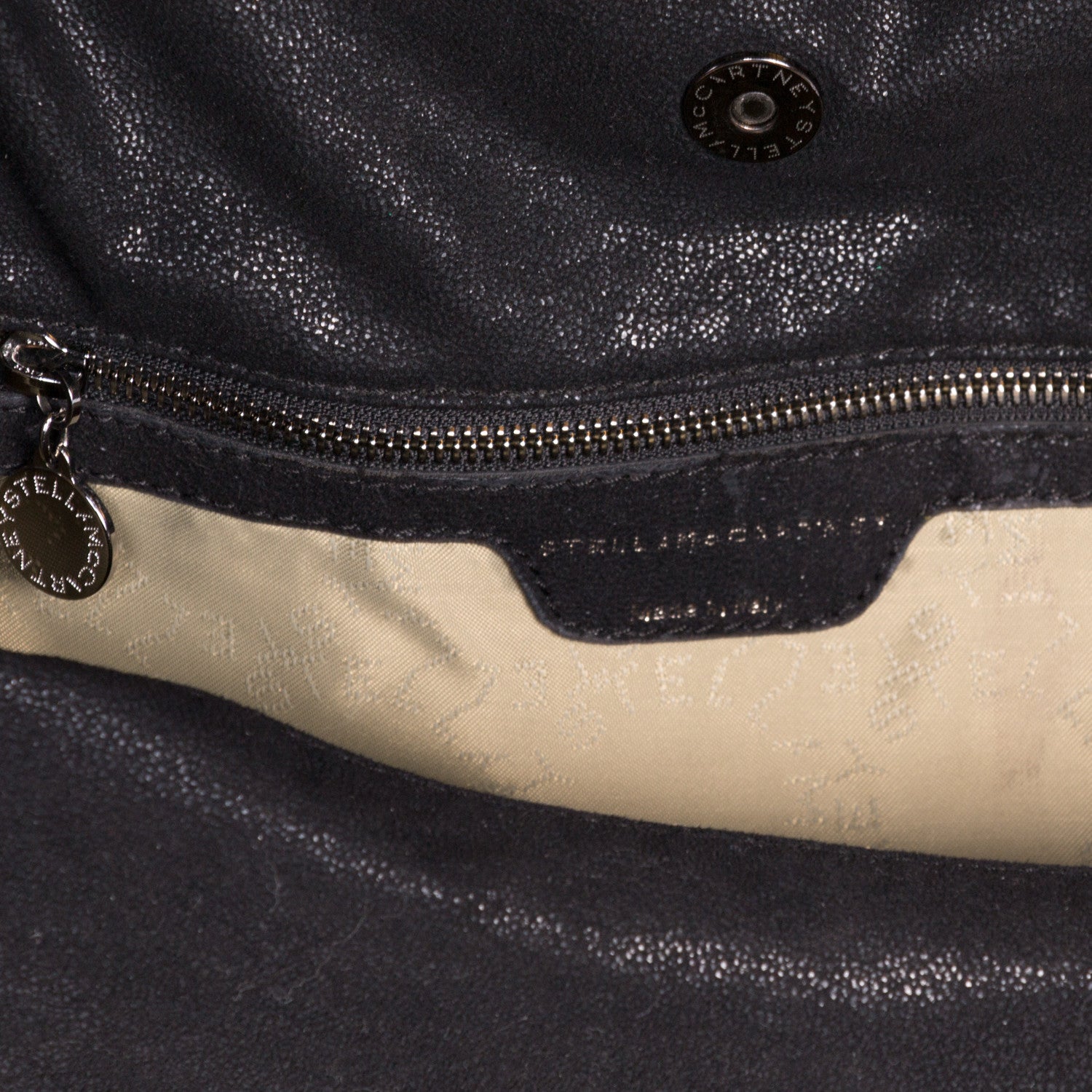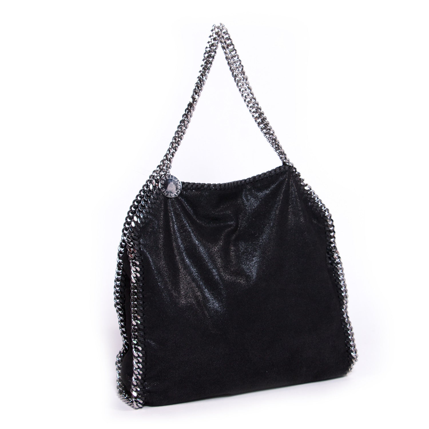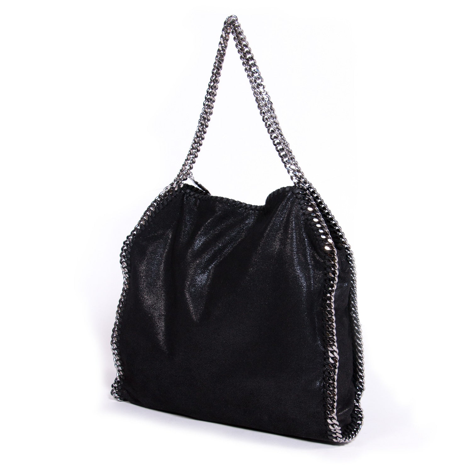 Details: Black Shaggy Deer / Ruthenium Hardware / Chain-Link Trim and Shoulder Strap / Stella McCartney Logo / Fully Lined With Stella McCartney Logo Print Jacquard / Inside Pocket And Top Snap Closure