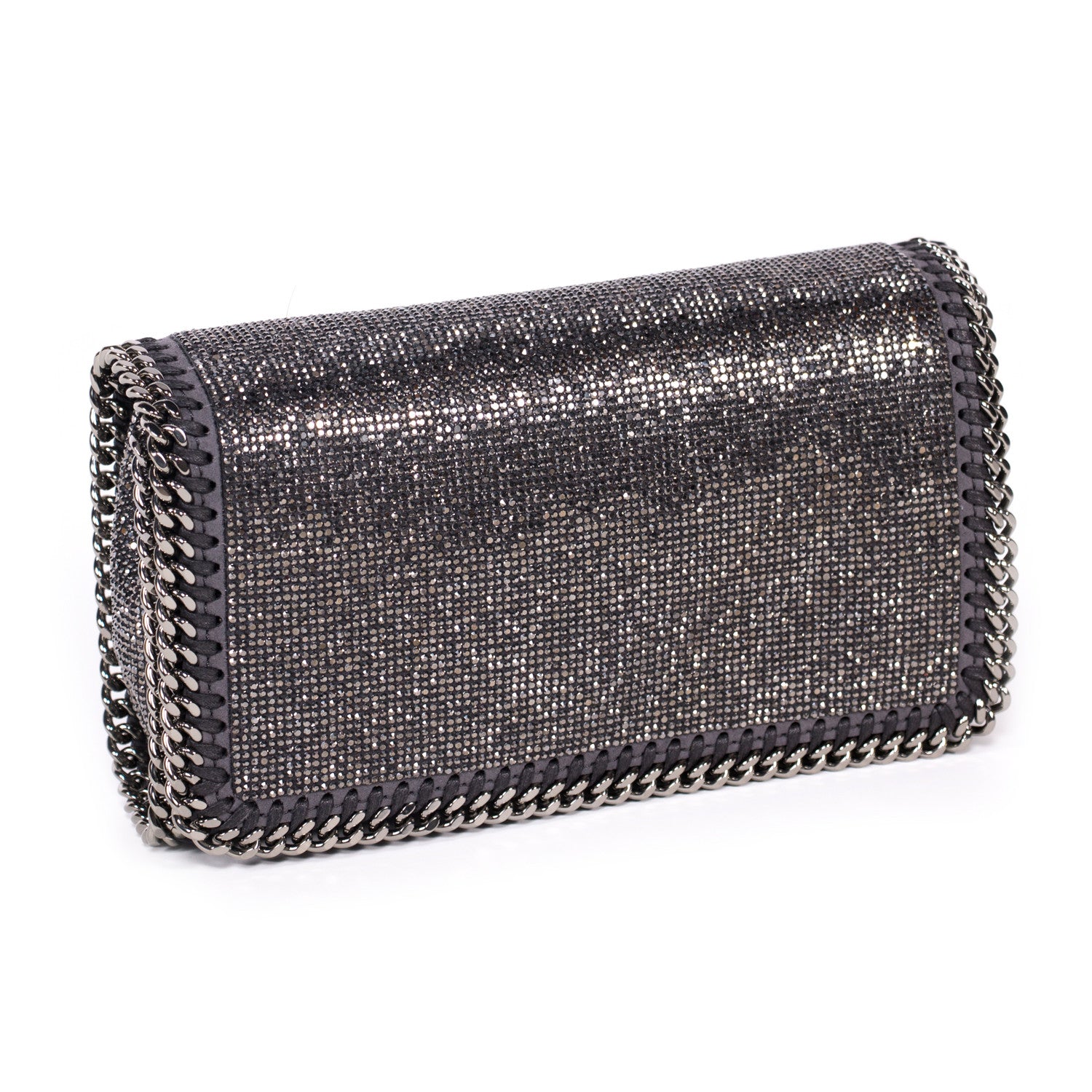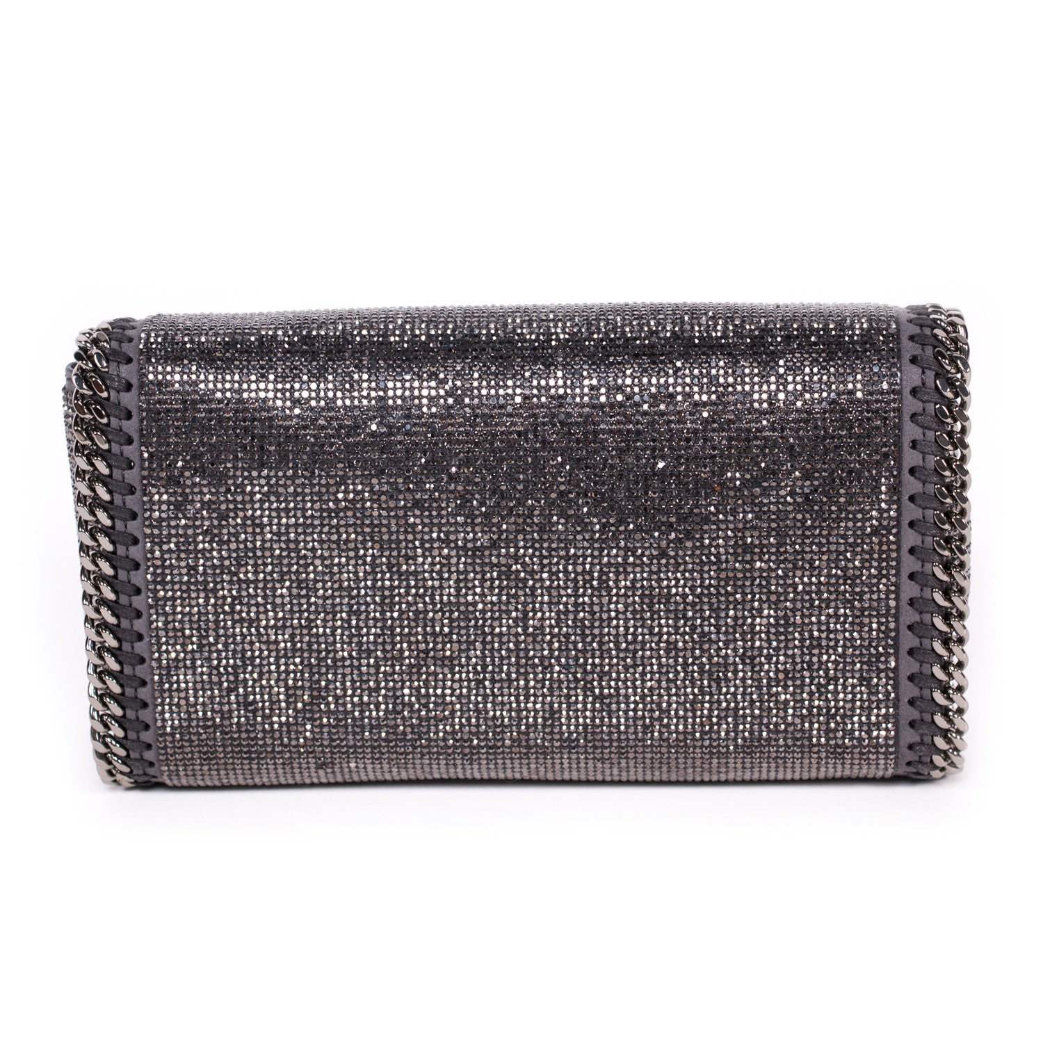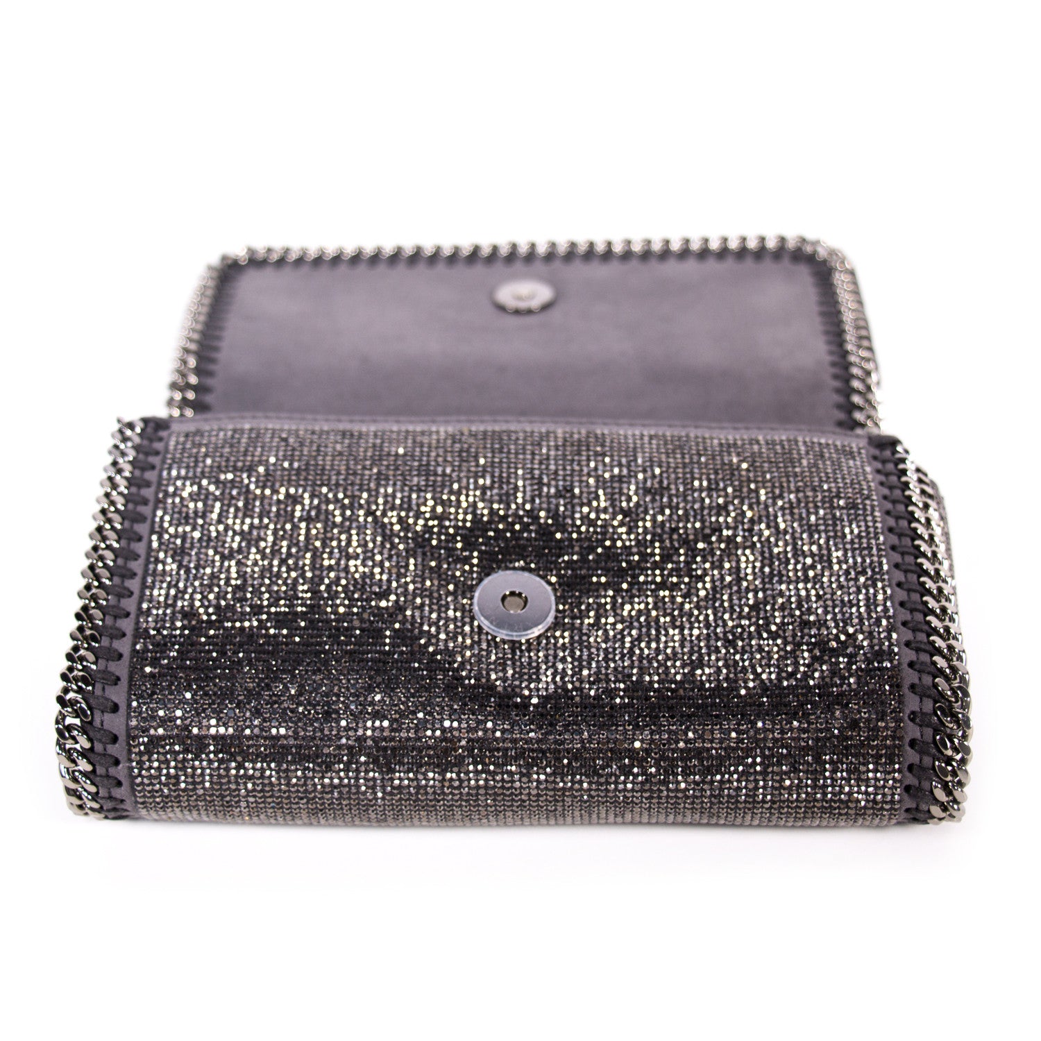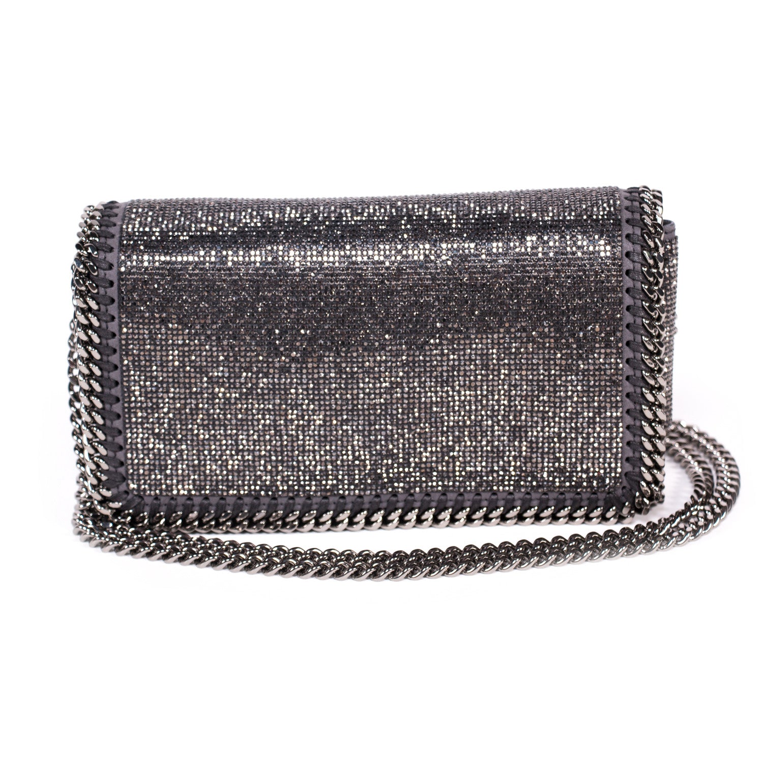 Details: Grey And Silver Crystal Embellished Shoulder Bag / Silver-Tone Hardware / Crystal Adornments Throughout / Concealed Chain Shoulder Strap / Grey Fabric Lining At Interior / Single Internal Slit Pocket / Magnetic Snap Closure At Front Flap