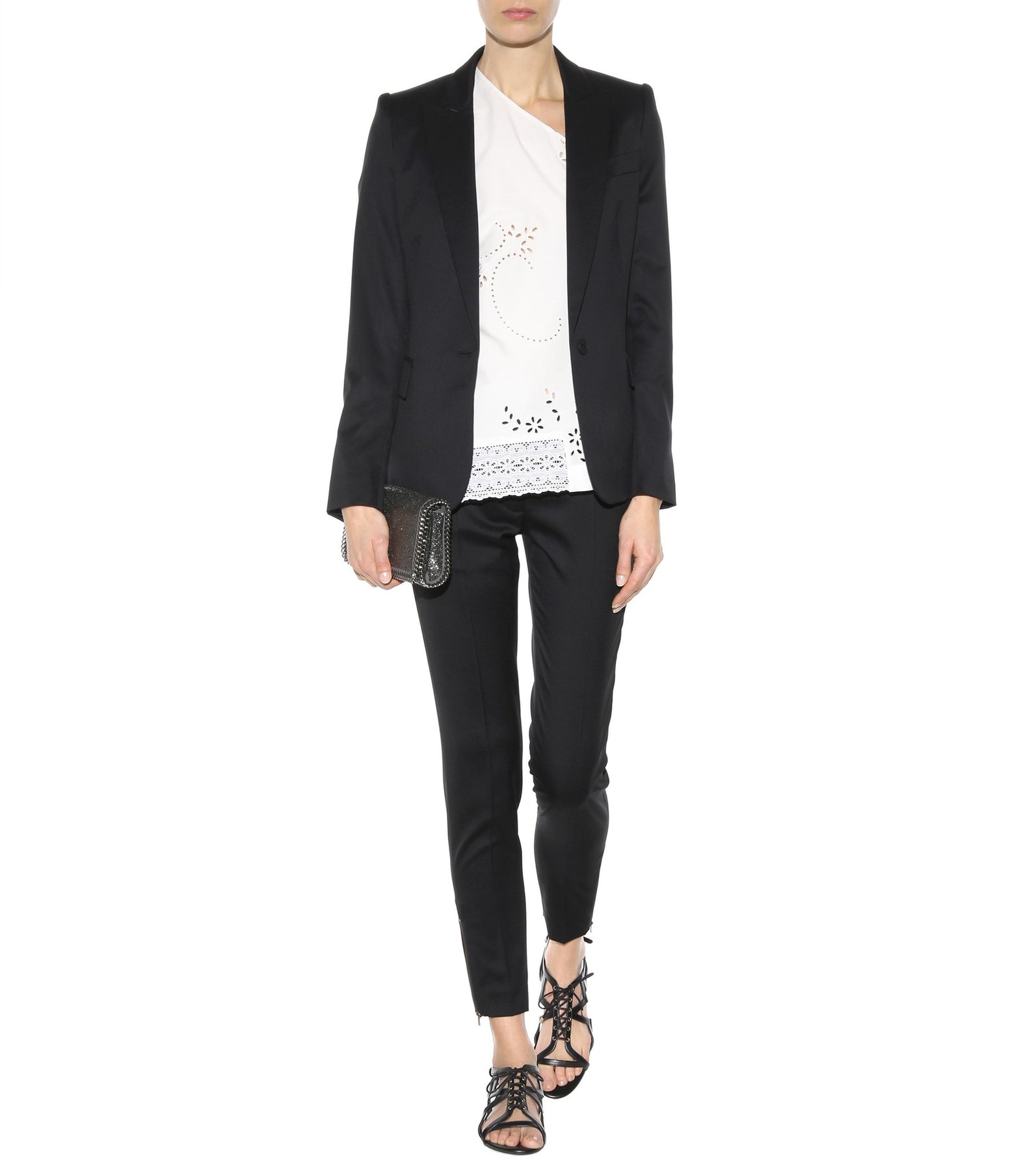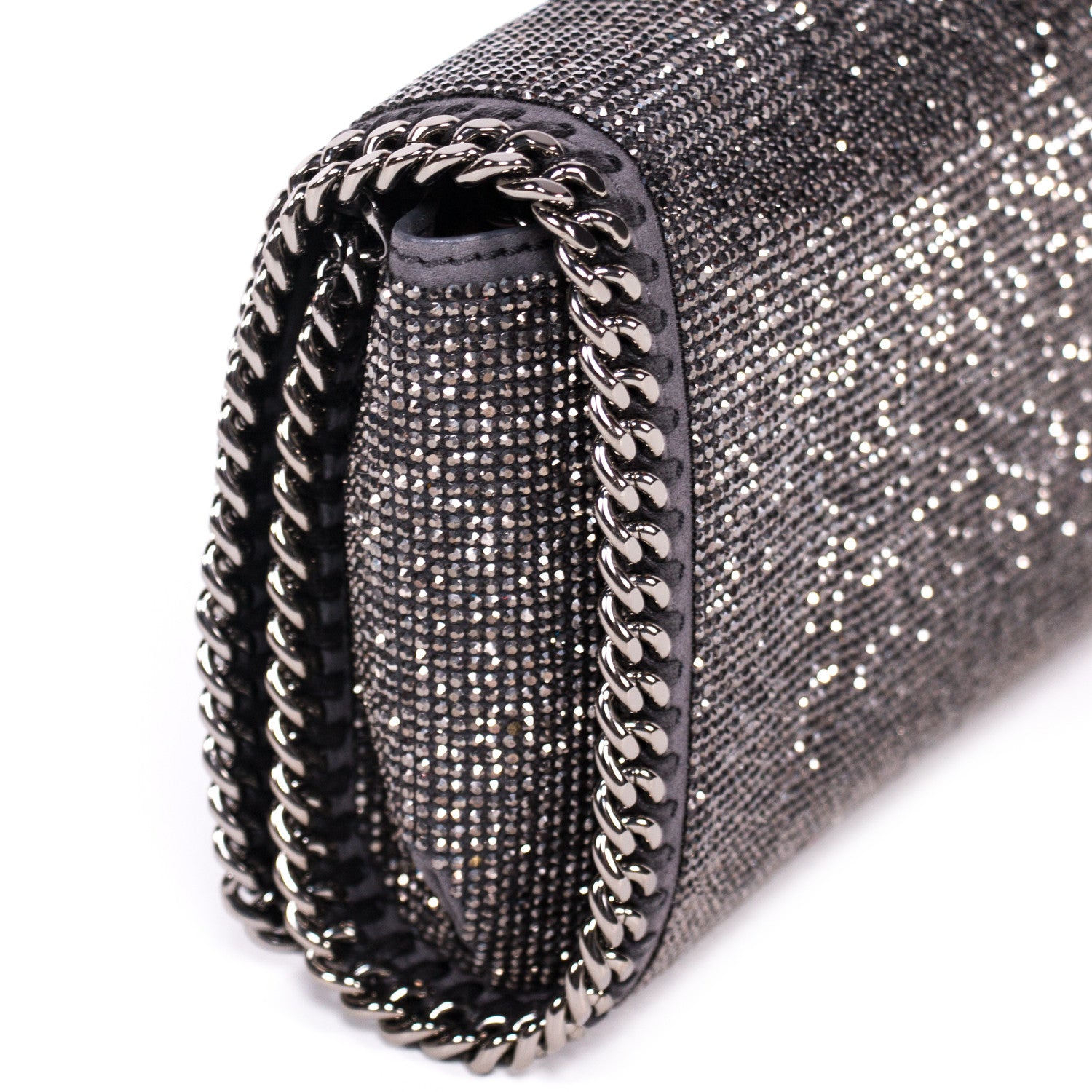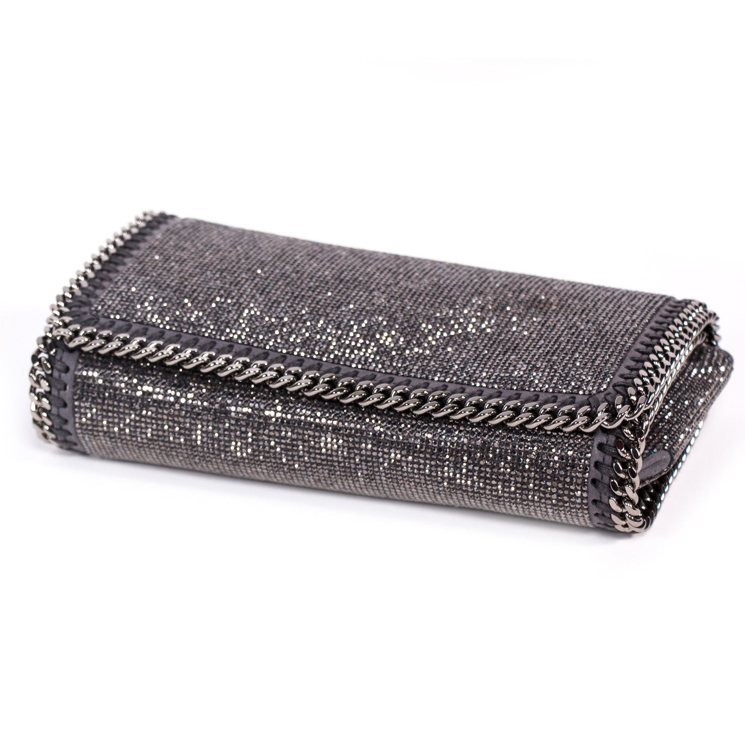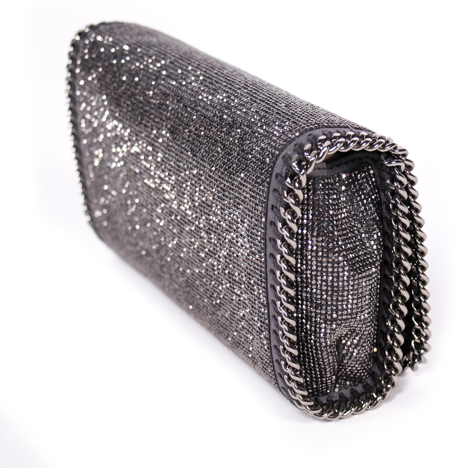 Details: Grey And Silver Crystal Embellished Shoulder Bag / Silver-Tone Hardware / Crystal Adornments Throughout / Concealed Chain Shoulder Strap / Grey Fabric Lining At Interior / Single Internal Slit Pocket / Magnetic Snap Closure At Front Flap