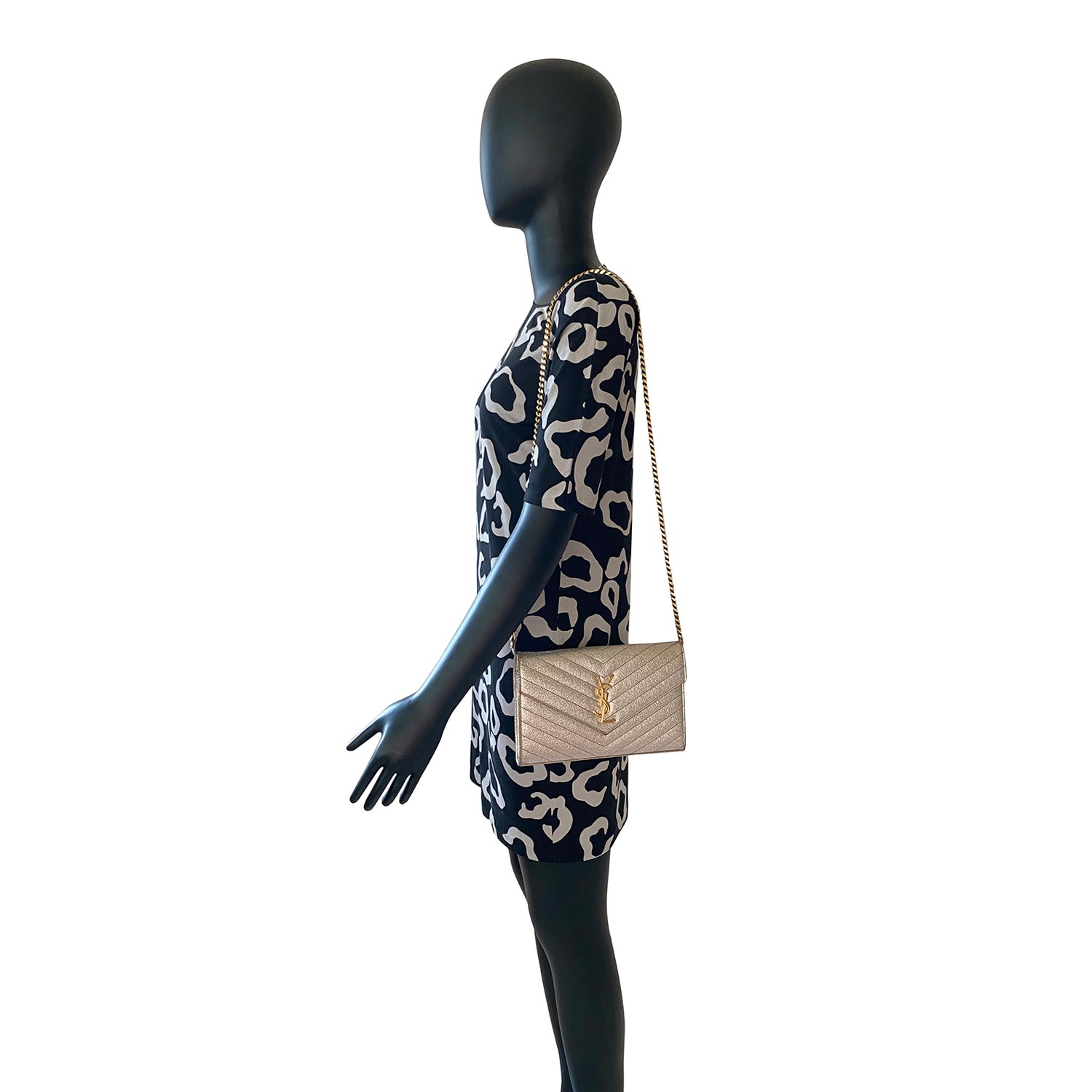 Description: Authentic Pre-Owned Saint Laurent Grain De Poudre Monogram Wallet On Chain
