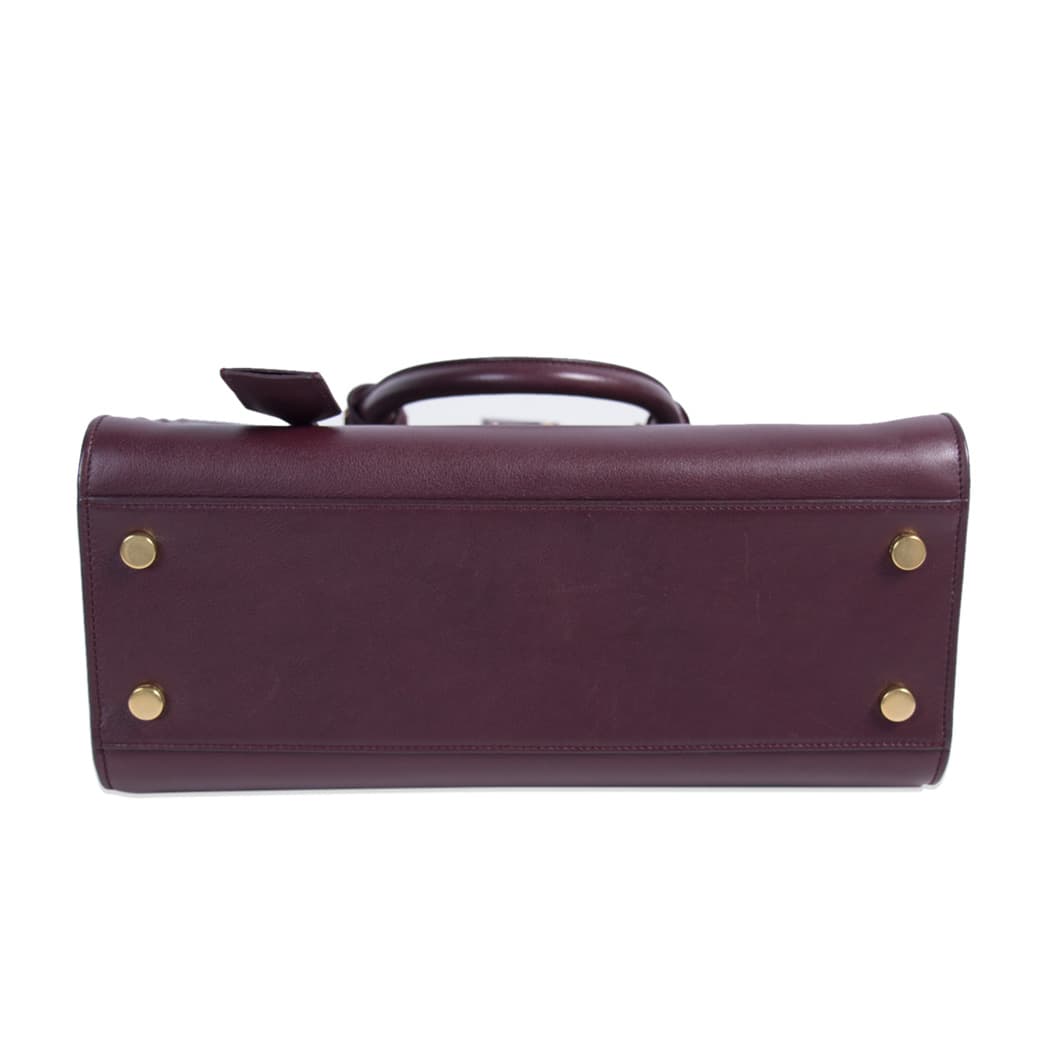Details: Burgundy Calf Leather / Gold-Tone Hardware / Detachable Shoulder Strap / Dual Rolled Handles / Signature YSL Logo at Front / Suede Interior Lining / Single Flat Pocket at Inside / Dual Zipper Closure at Top