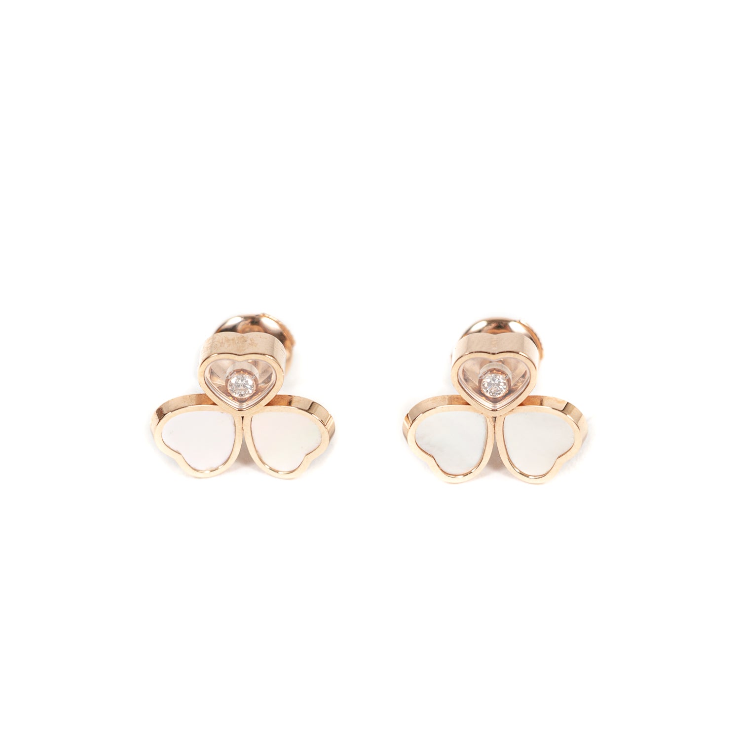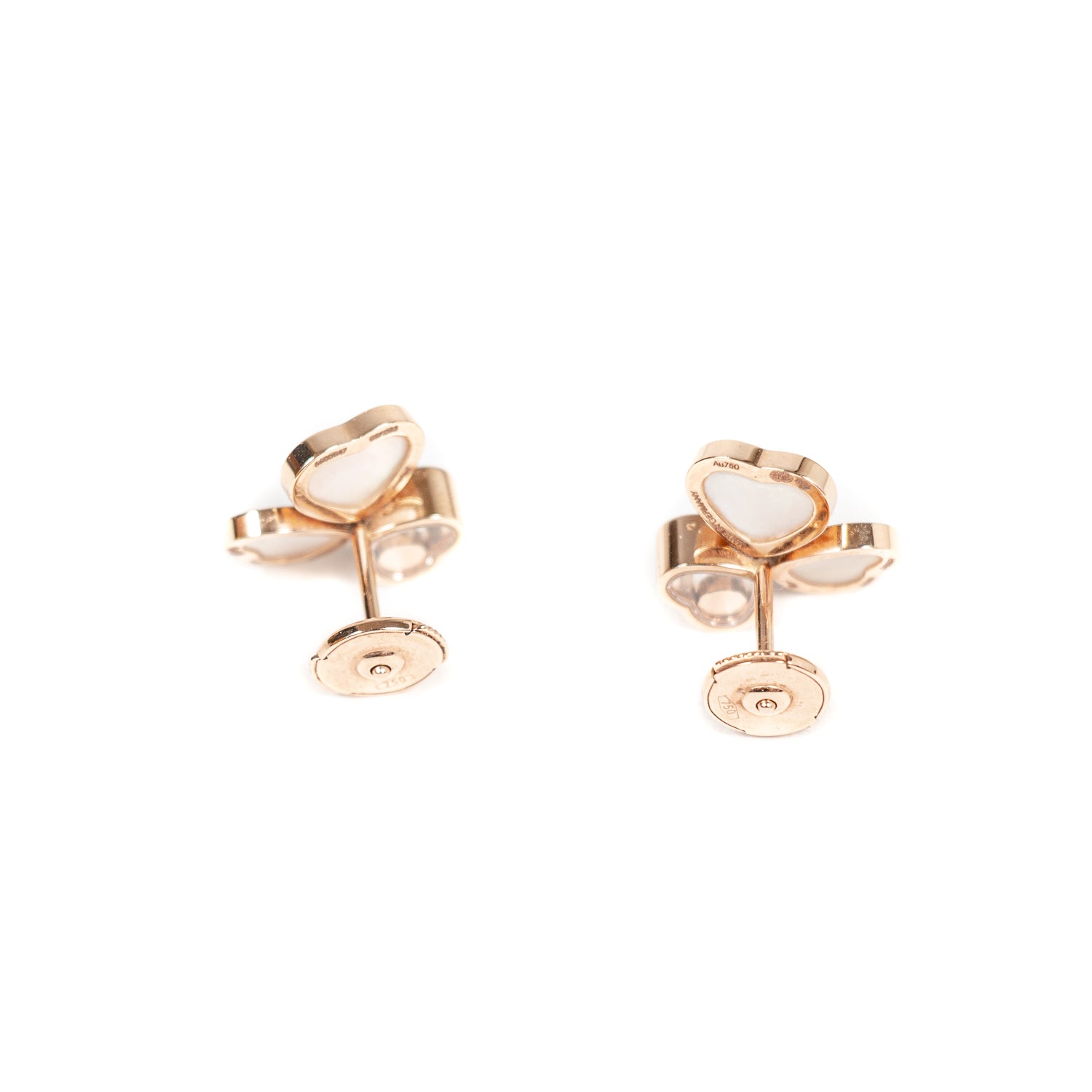 Description: Authentic New Chopard Happy Hearts Wings Rose Gold Diamond Mother of Pearl Earrings