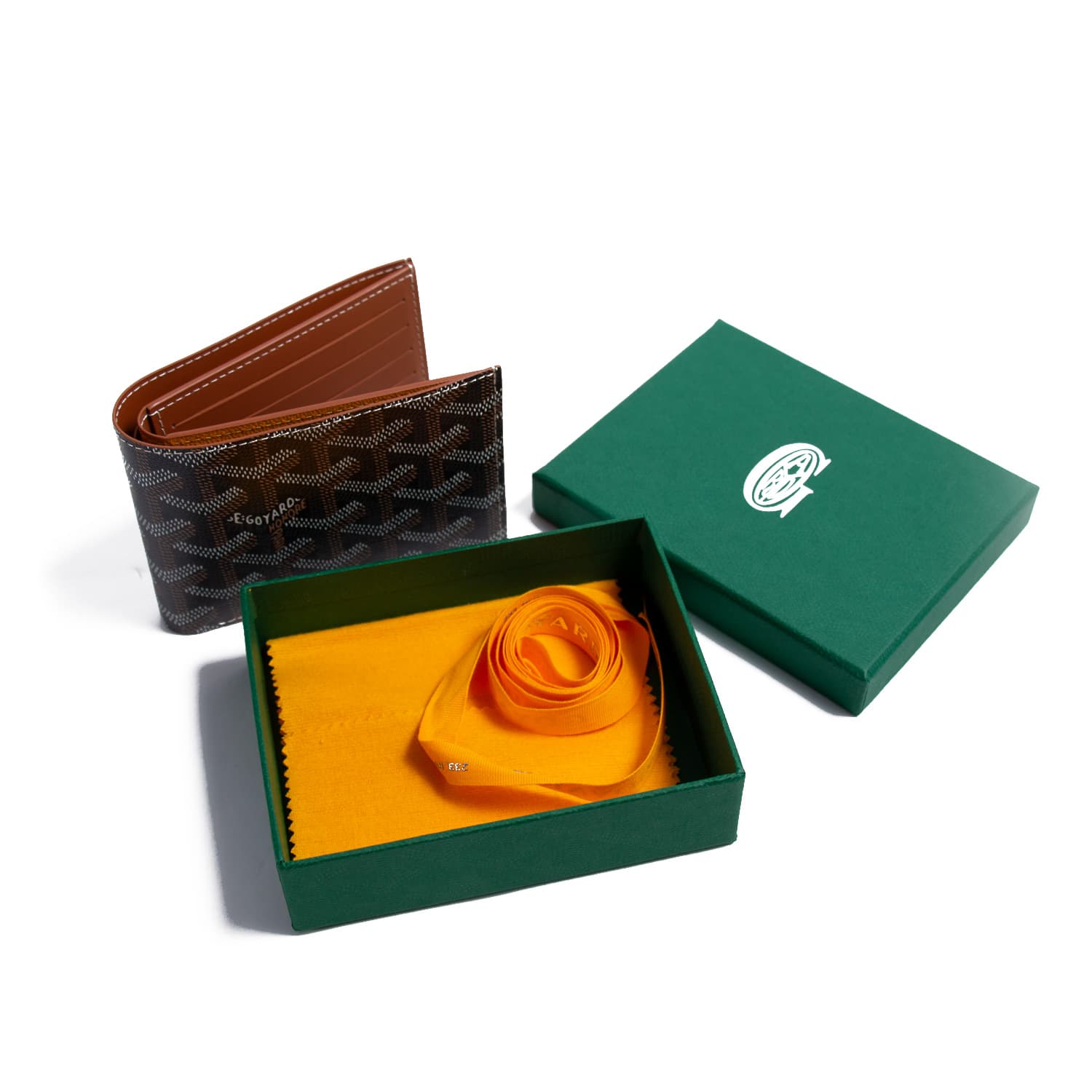 Details: Tan and Black Stenciled Goyardine Coated Canvas / Tan Leather Trim / Yellow Grained Interior Leather / Eight-Card Slots / Dual Bill Compartments / Dual Pockets